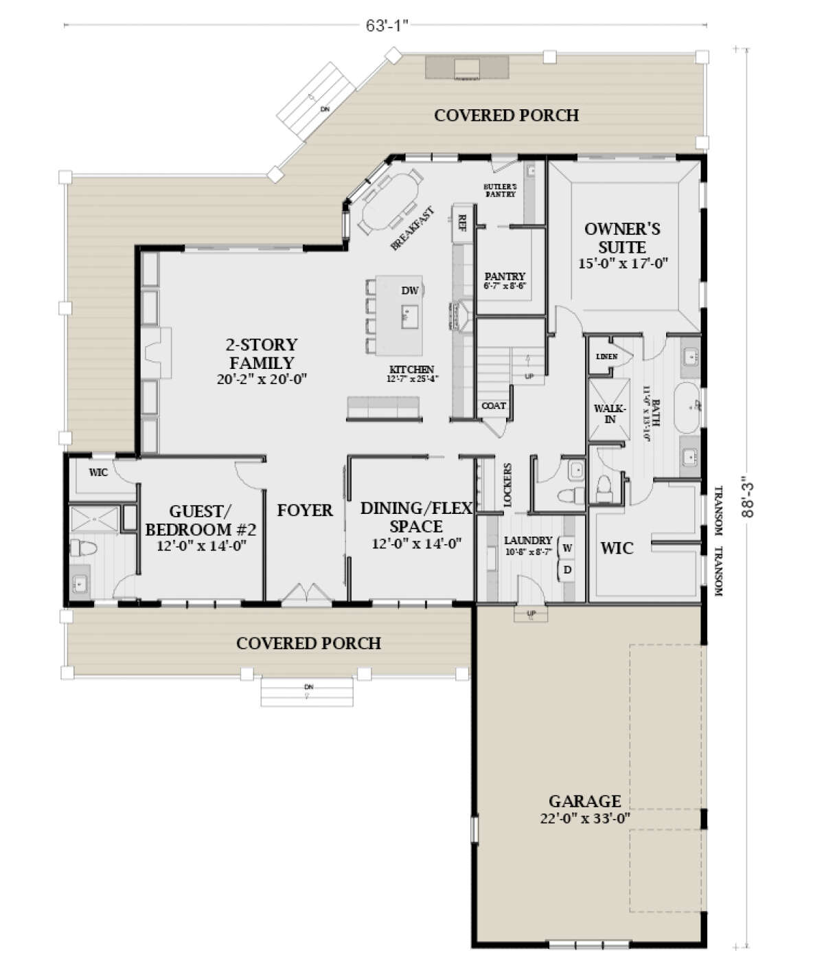Проект двухэтажного дома с гаражом на три и более машин в современном стиле S5-380 (6849-00129)