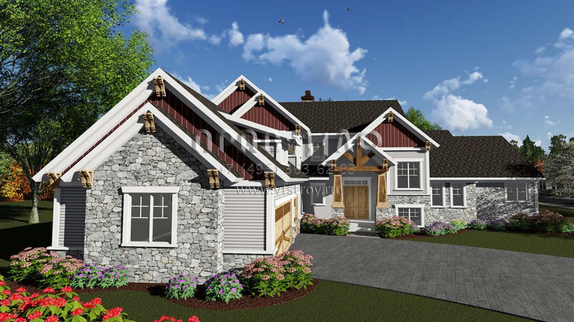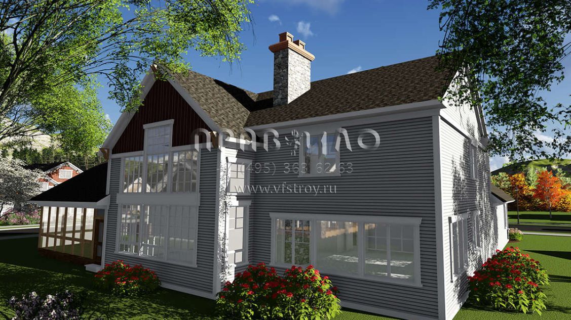 Проект двухэтажного дома с гаражом на три и более машин в американском стиле S5-381 (1020-00081)