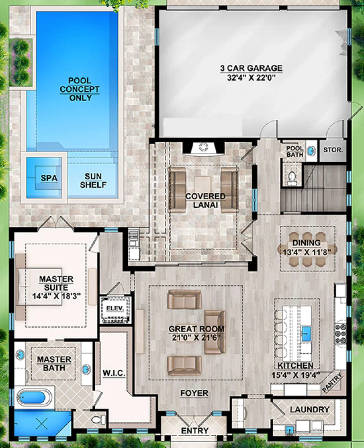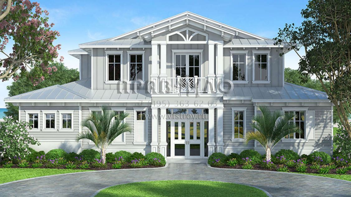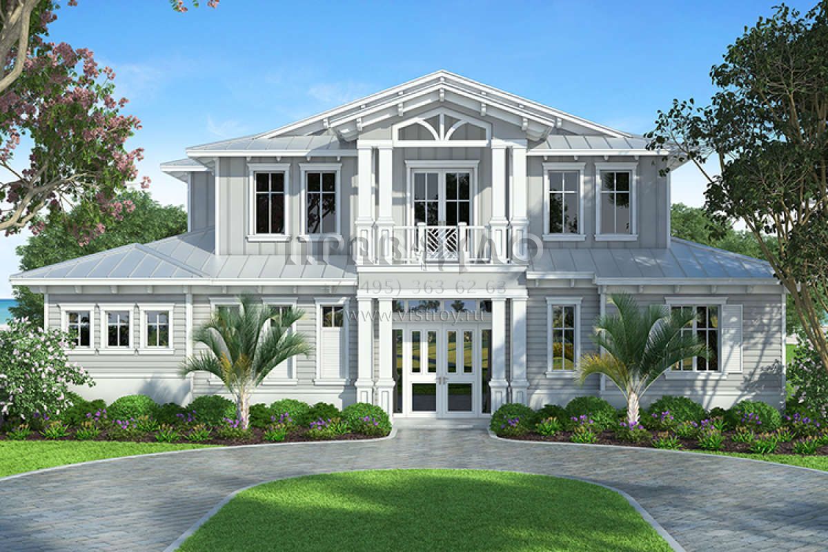Проект двухэтажного дома с гаражом на три и более машин в прибрежном стиле S5-382 (207-00038)