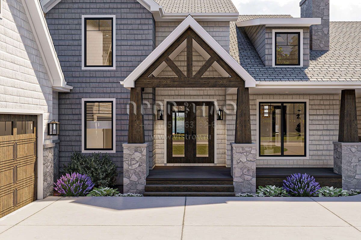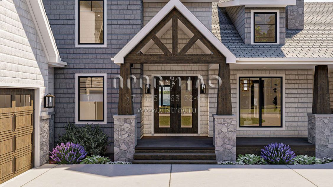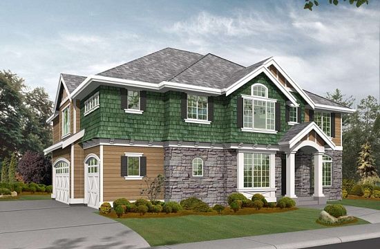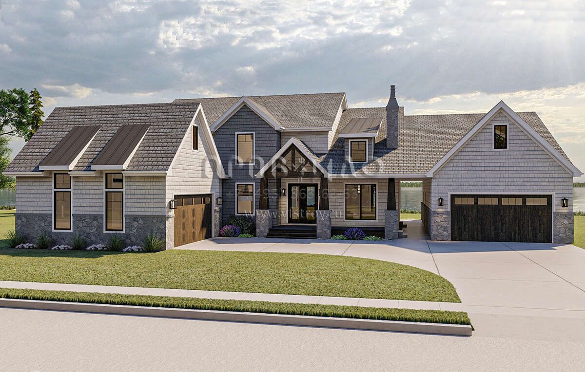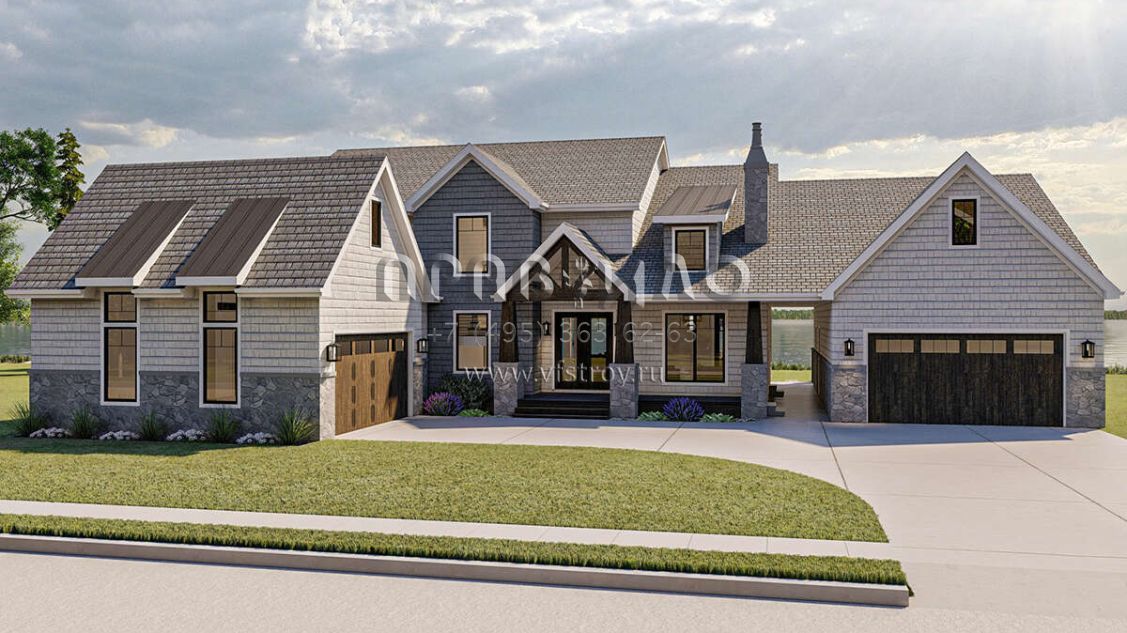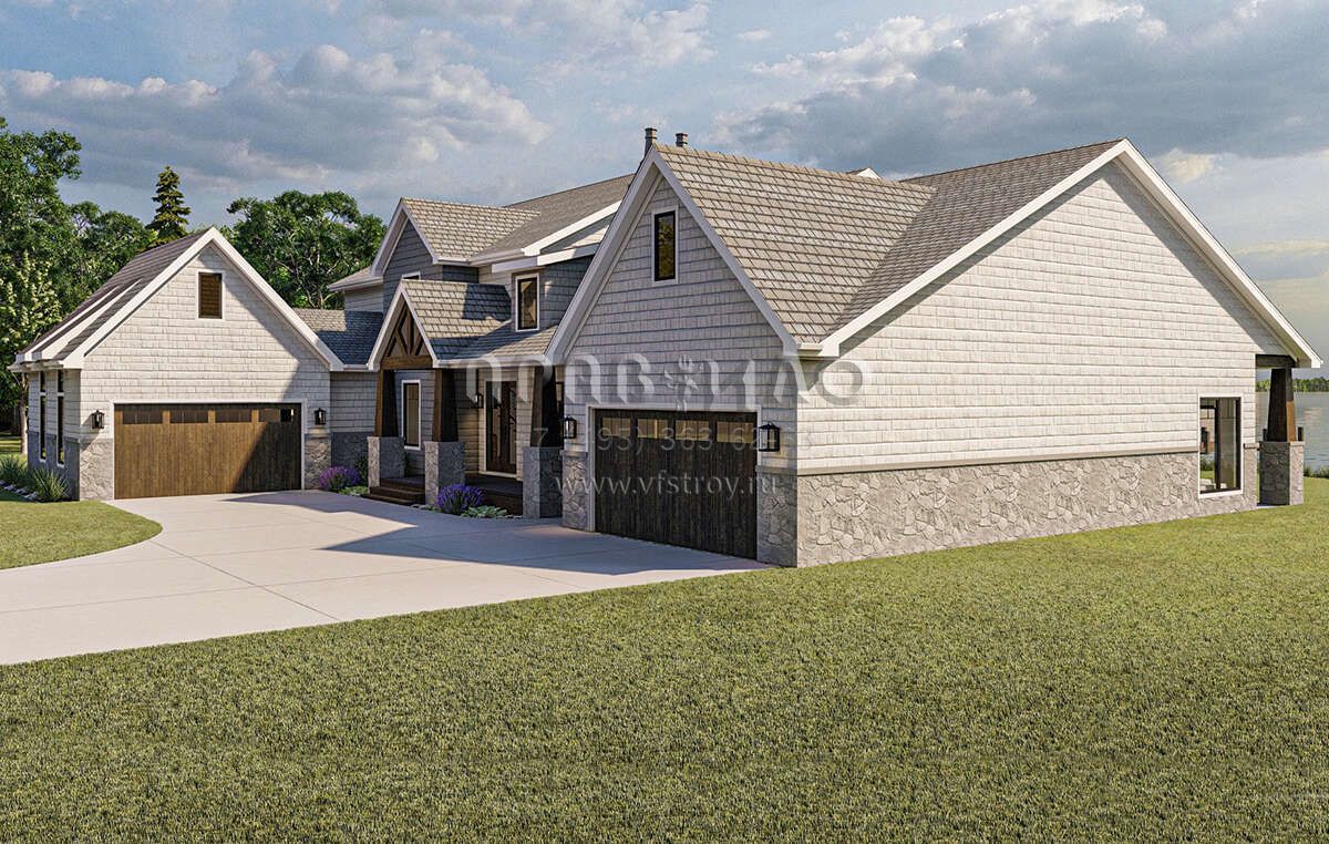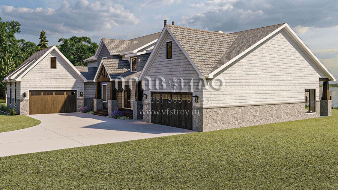 Проект двухэтажного дома с гаражом на три и более машин в стиле Ранчо S5-382 (963-00672)