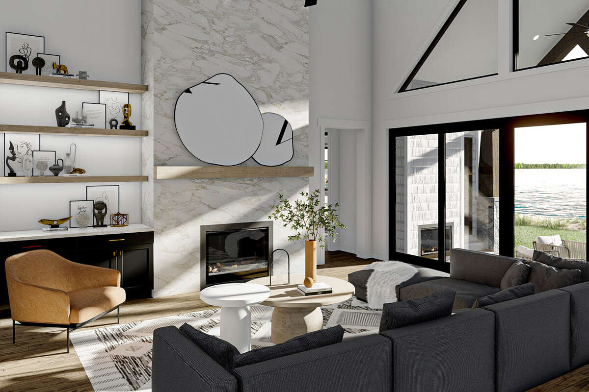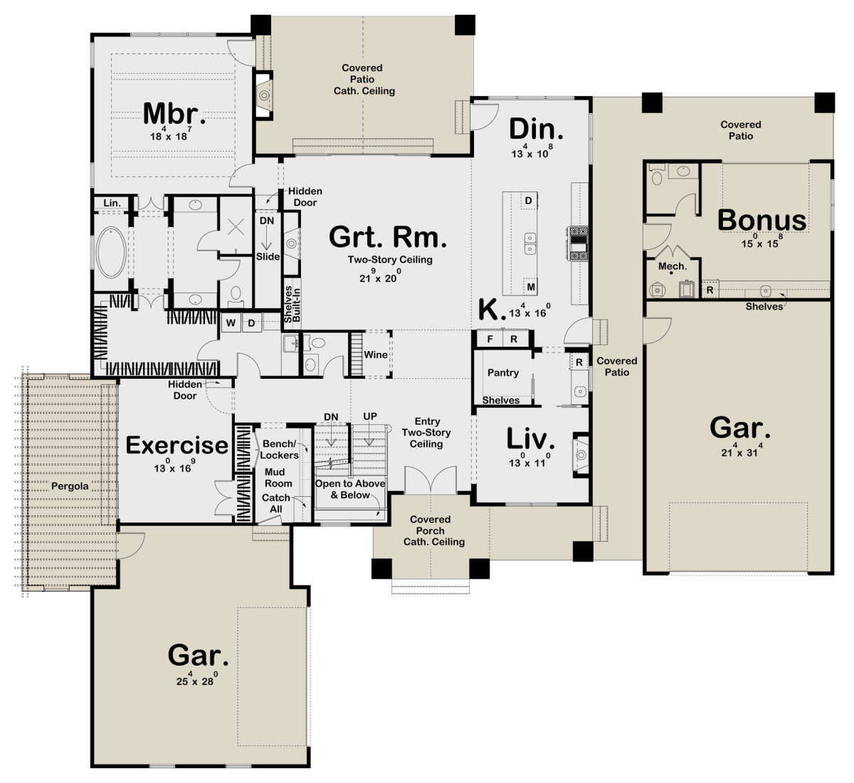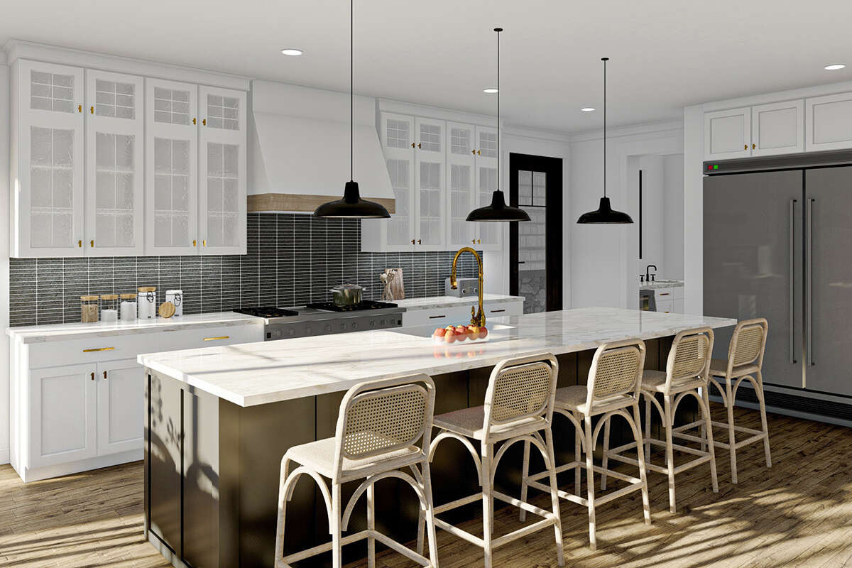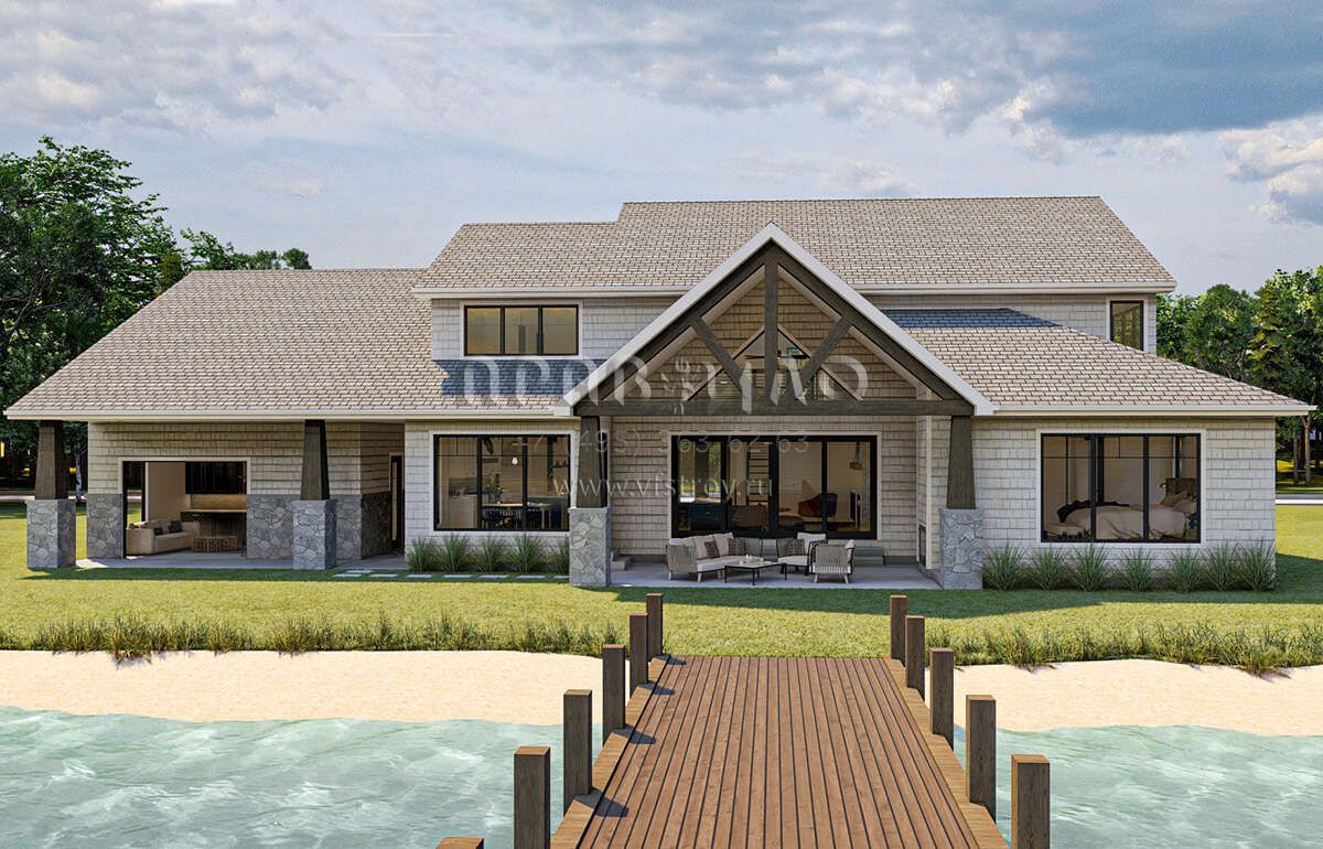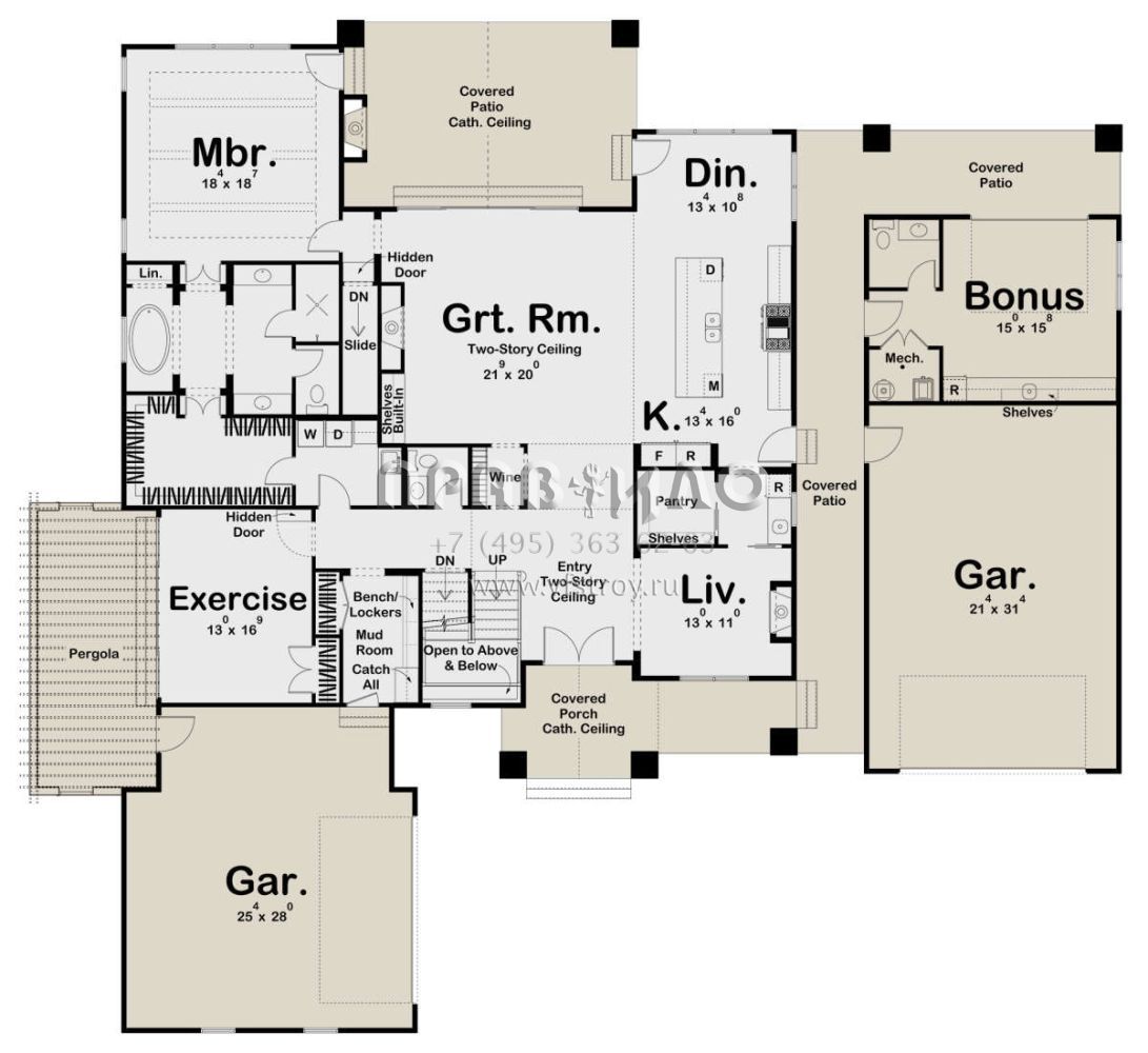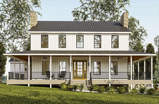 Проект двухэтажного дома с гаражом на три и более машин в стиле Ранчо S5-382 (963-00672)