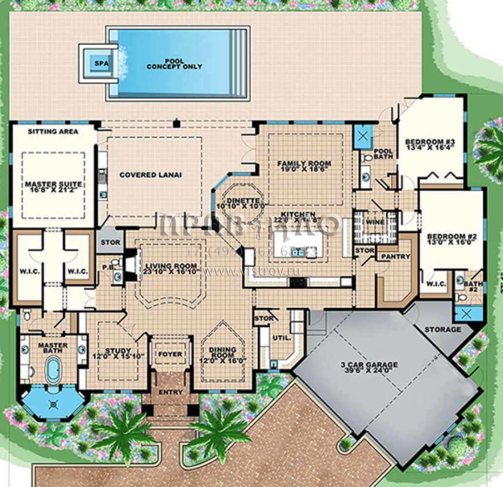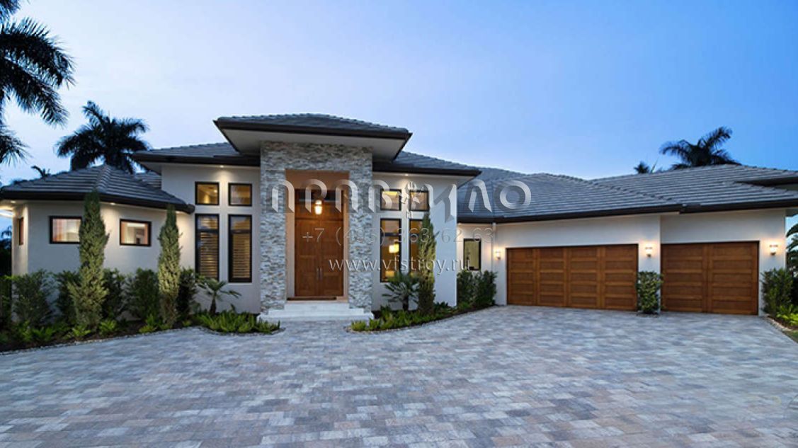Проект одноэтажного дома с гаражом на три и более машин в современном стиле S5-383 (1018-00252)