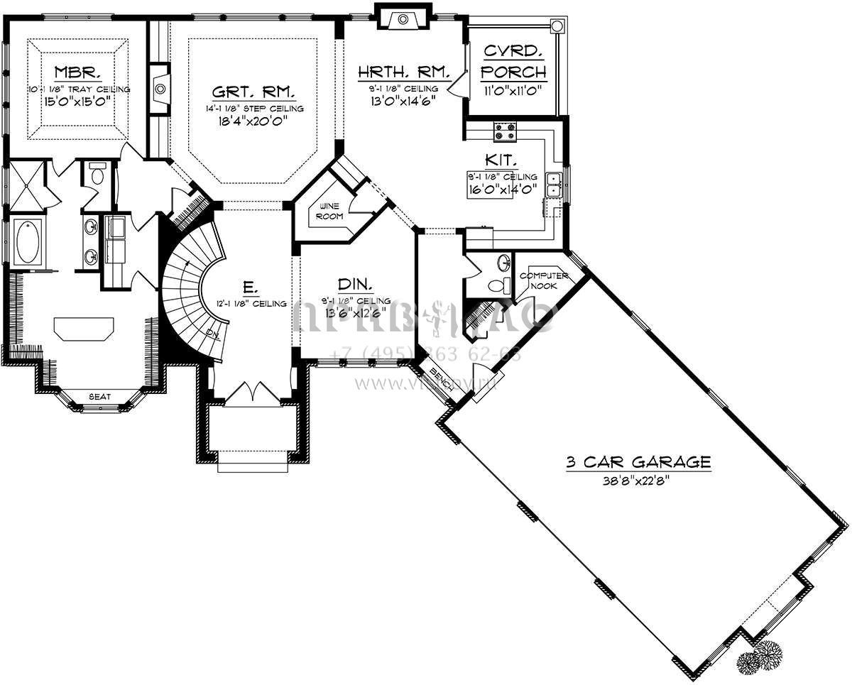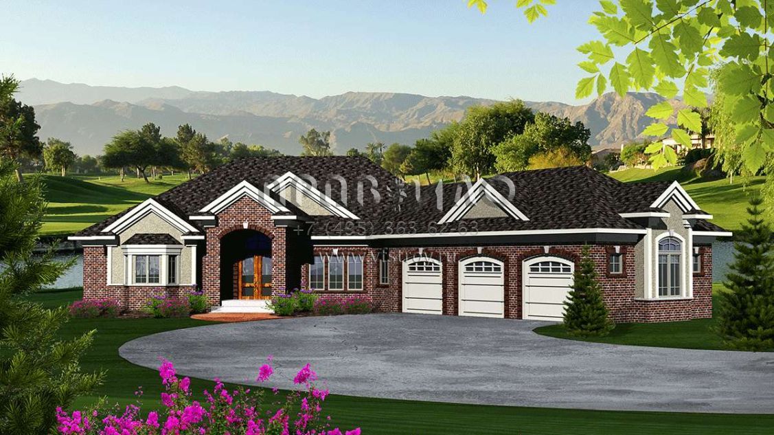Проект одноэтажного дома с гаражом на три и более машин в стиле Ранчо S5-383 (1020-00269)