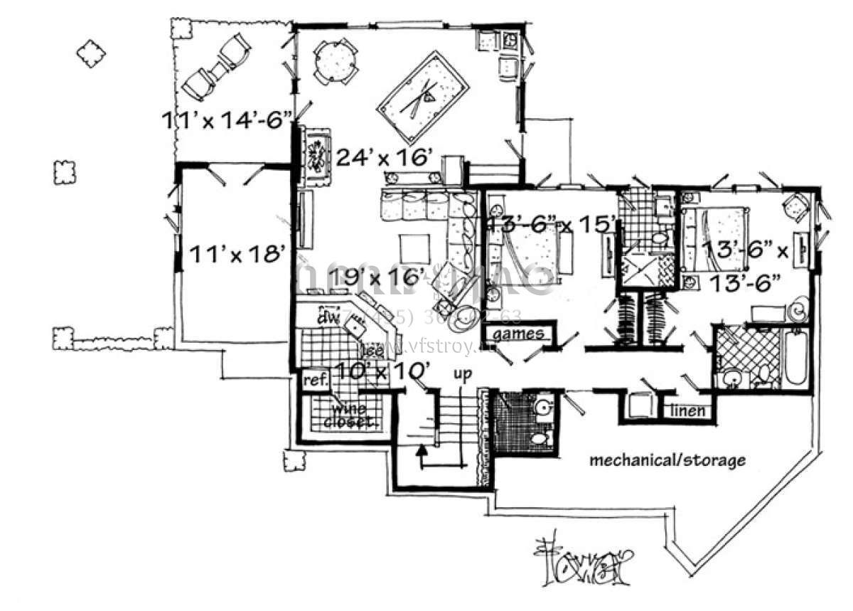 Проект одноэтажного дома с гаражом на три и более машин в стиле Шале S5-383 (1907-00024)
