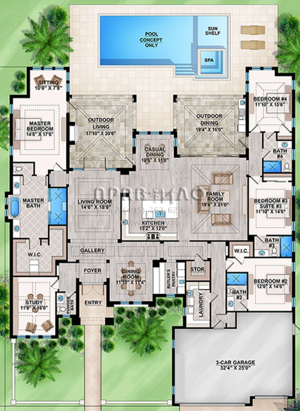 Поскольку этот проект разрабатывался иностранными архитекторами, для строительства дома требуется переработка проекта под действующие в России нормы. Данные визуализации проекта представлены для ознакомления с концепцией проекта. Проект разработан американским архитектурным бюро и представлен America's Best House Plans.