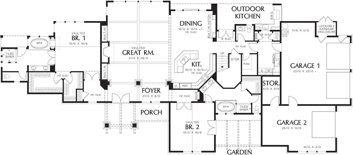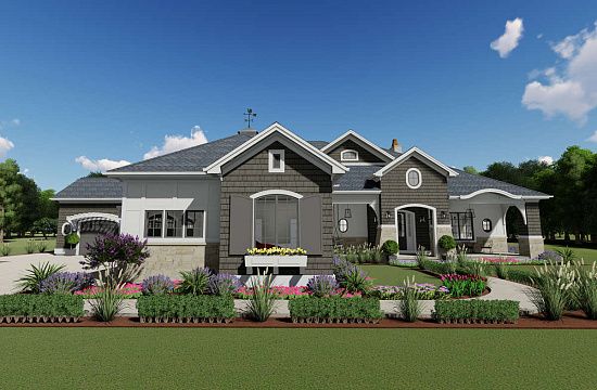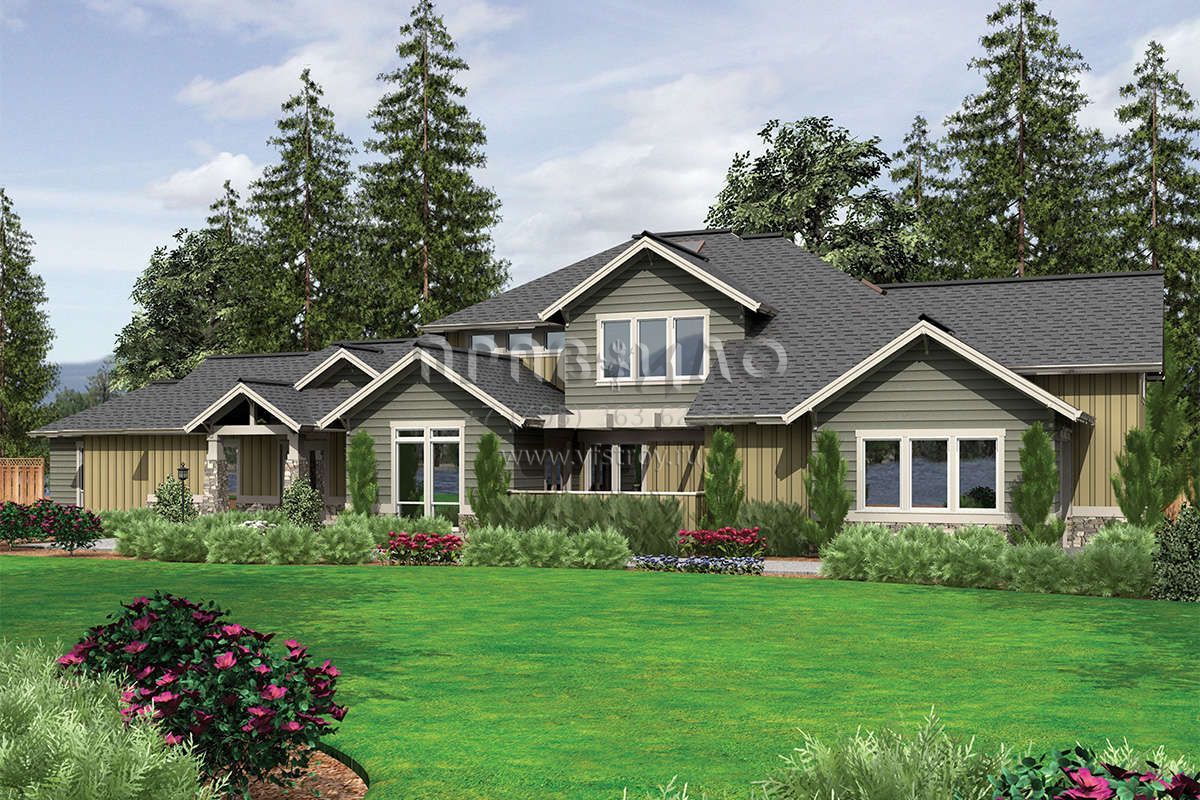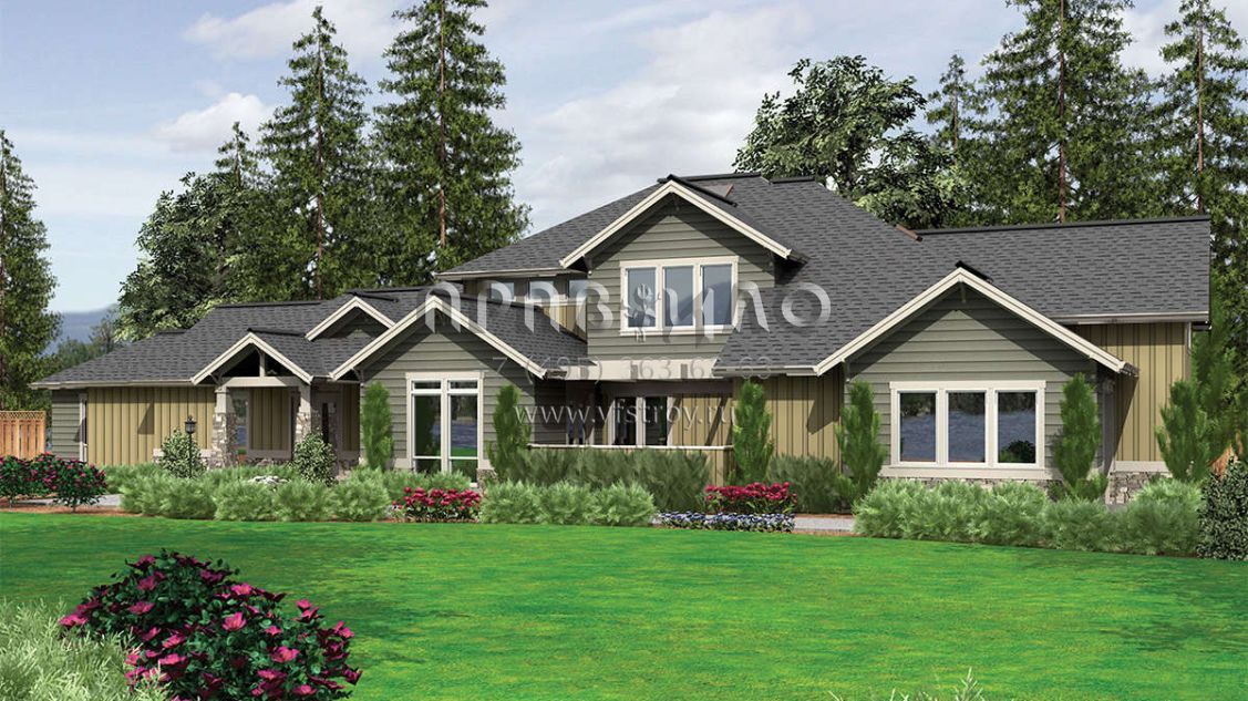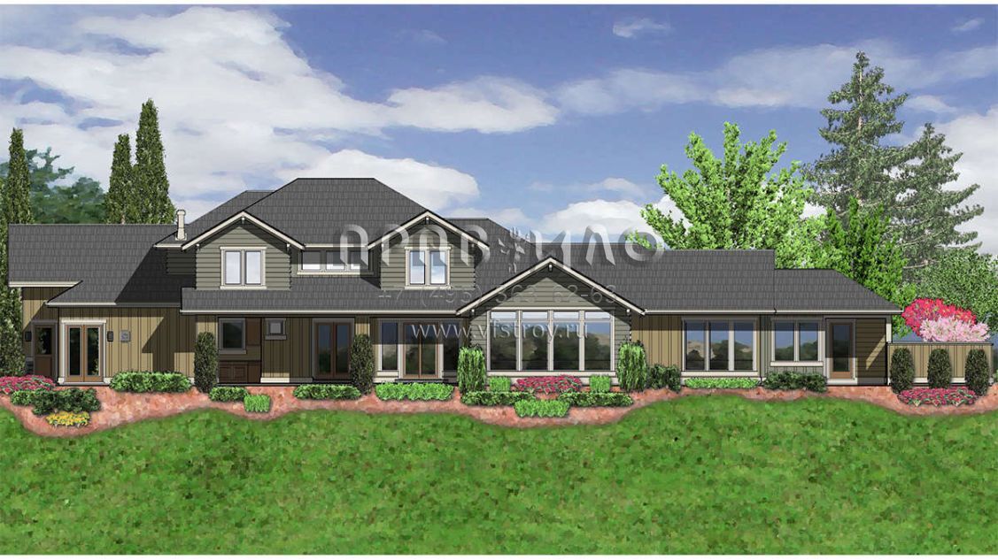 Проект двухэтажного дома с гаражом на три и более машин в стиле Ранчо S5-383 (2559-00601)