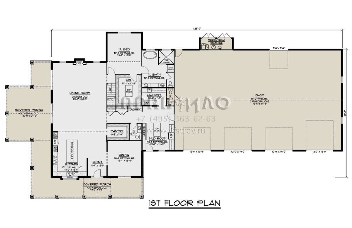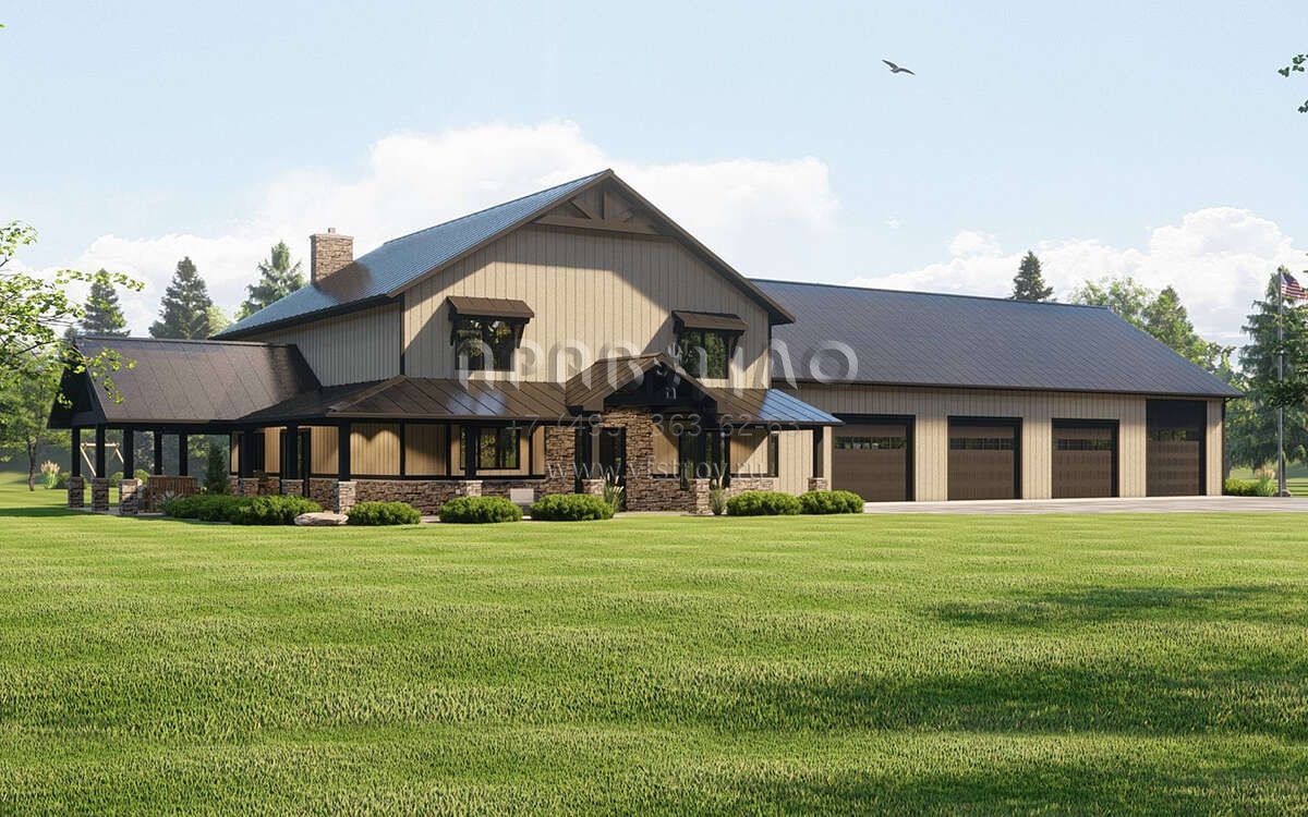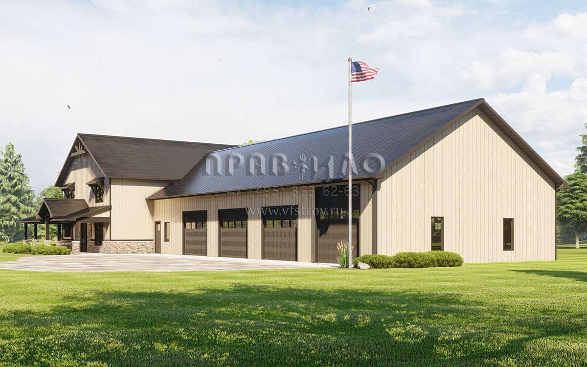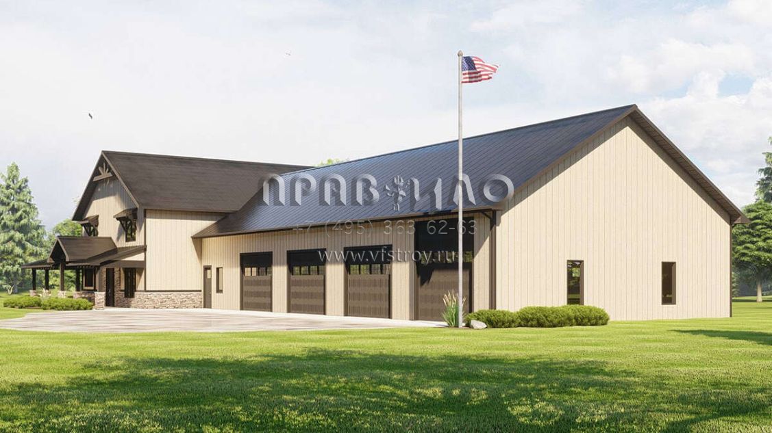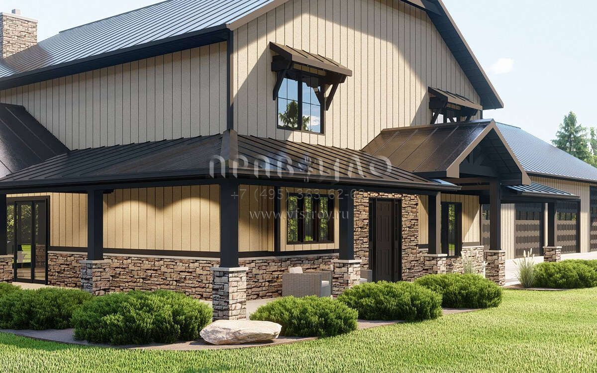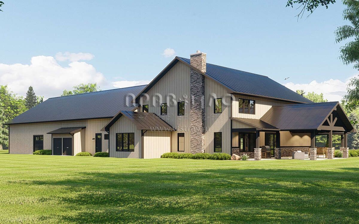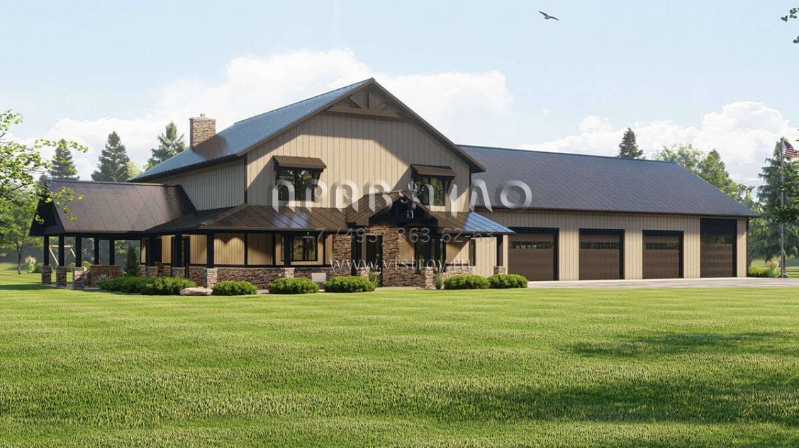 Проект двухэтажного дома с гаражом на три и более машин в стиле БарнХаус S5-383 (5032-00232)