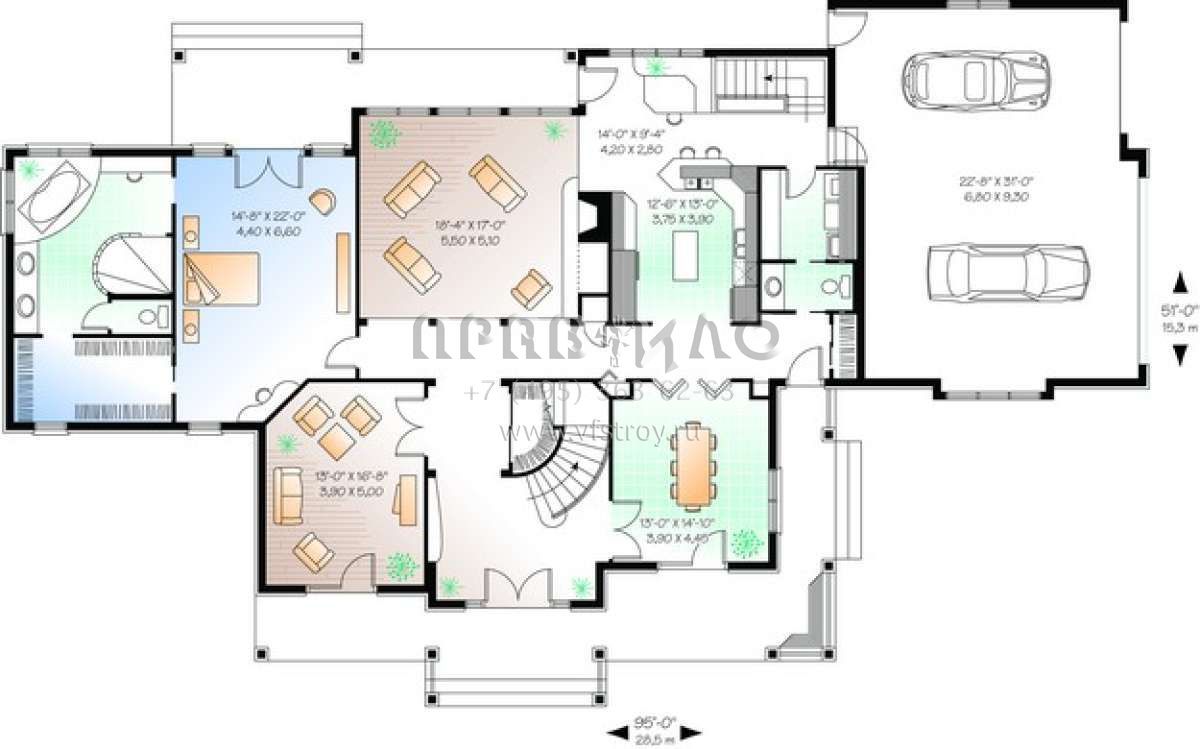 S5-385 (034-00499) Это иностранный проект, для которого требуется адаптация под нормы, действующие в Российской Федерации. Вы видите проект дома в стиле Ранчо. В этом доме сочетаются черты сельской постройки и аскетичность лофта. Внутри жильцы смогут проводить время с максимальным комфортом. Обратим внимание, что сейчас на планировках все размеры представлены в футах. Для перевода в метры вам необходимо значение в футах умножить на 0,3048.