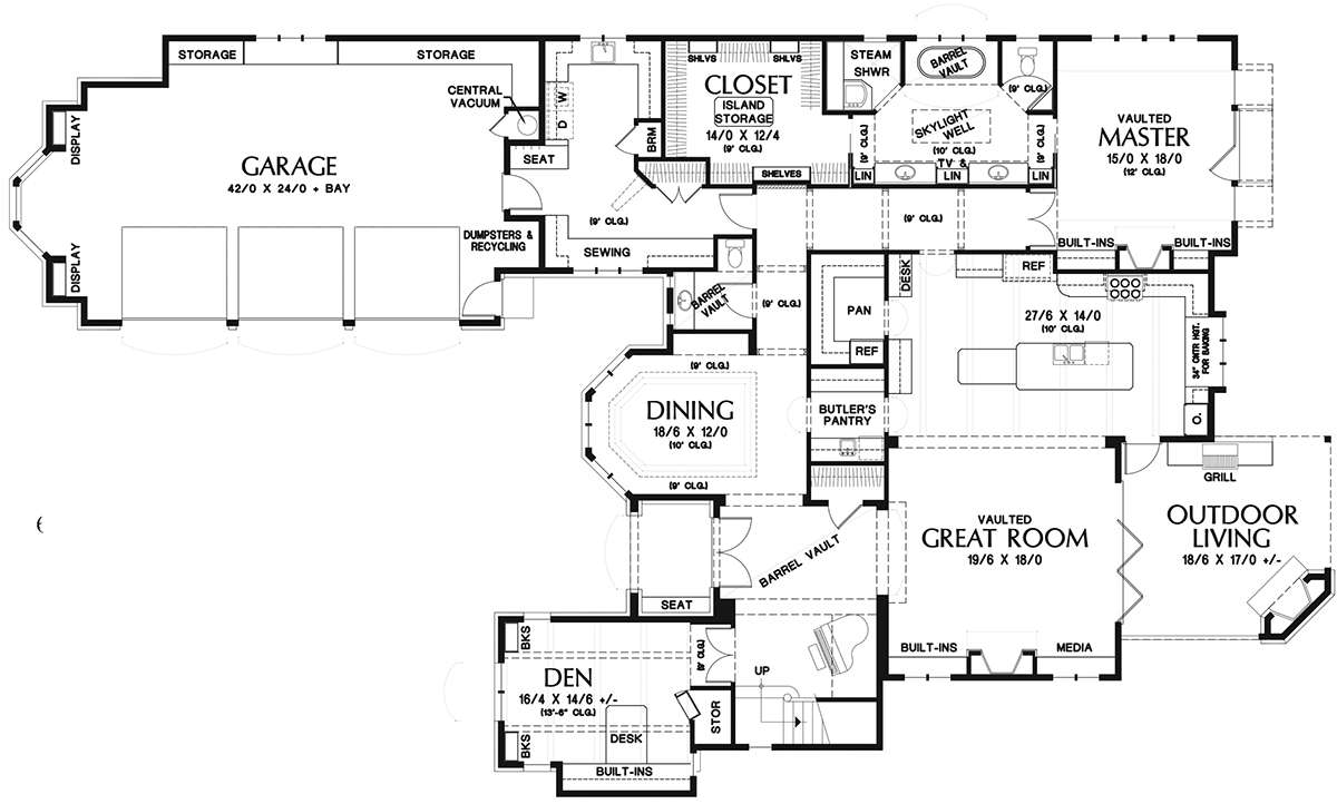 S5-385 (2559-00787) Это иностранный проект, для которого требуется адаптация под нормы, действующие в Российской Федерации. Вы видите проект дома в английском стиле. В этом доме сочетаются черты сельской постройки и аскетичность лофта. Внутри жильцы смогут проводить время с максимальным комфортом. Обратим внимание, что сейчас на планировках все размеры представлены в футах. Для перевода в метры вам необходимо значение в футах умножить на 0,3048.