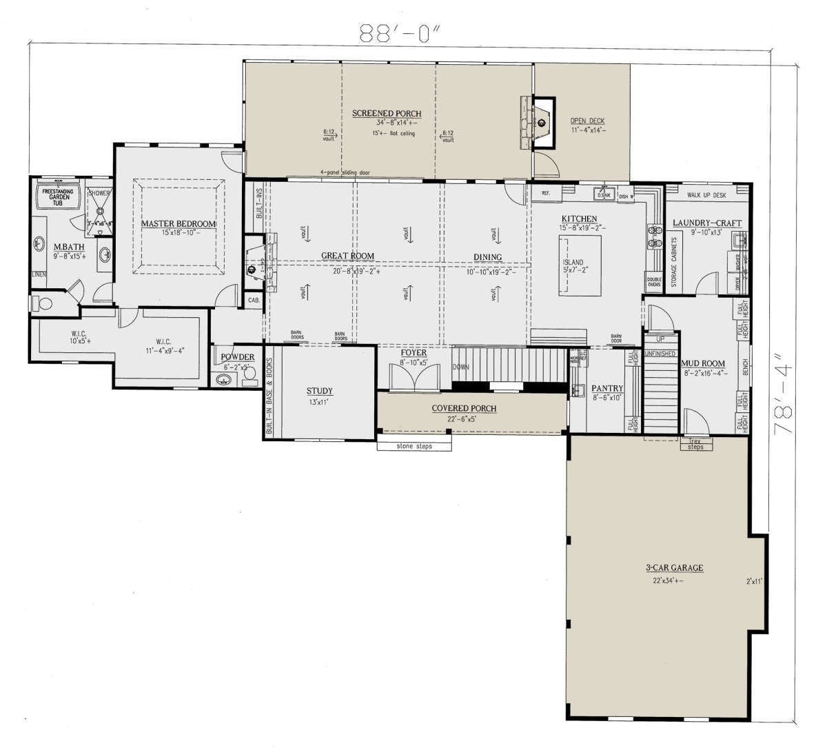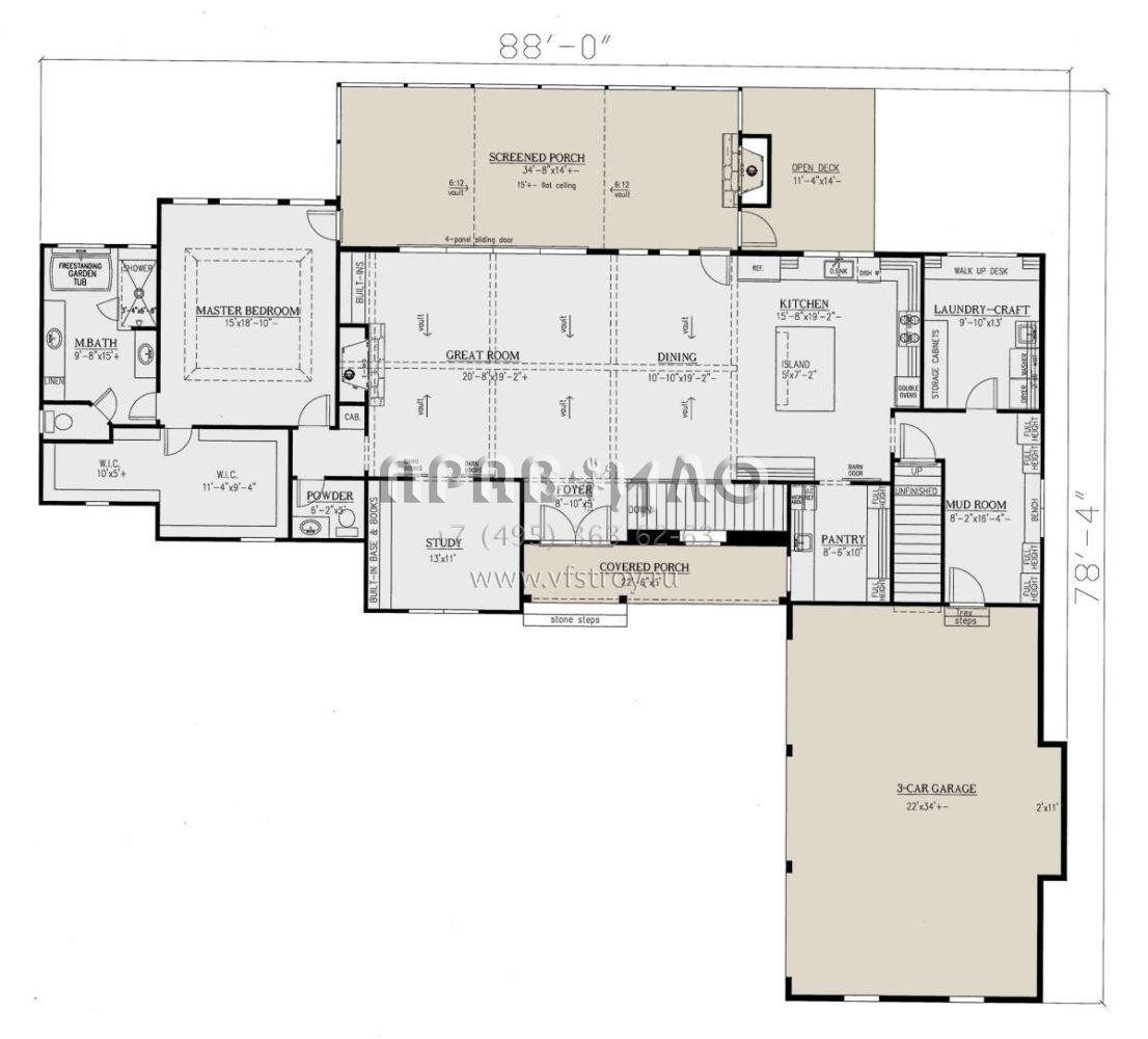 Проект одноэтажного дома с гаражом на три и более машин в стиле Ранчо S5-385 (286-00109)