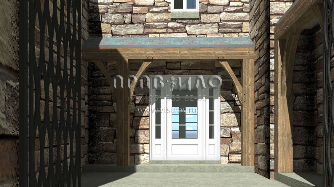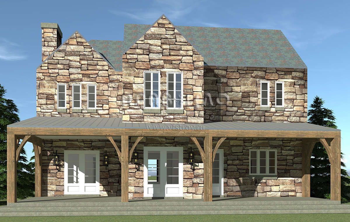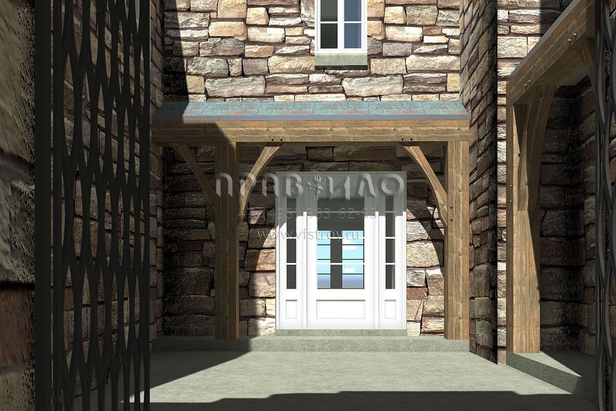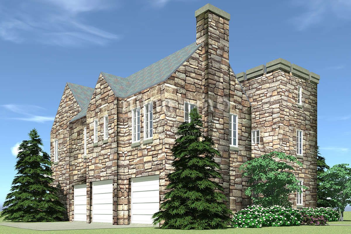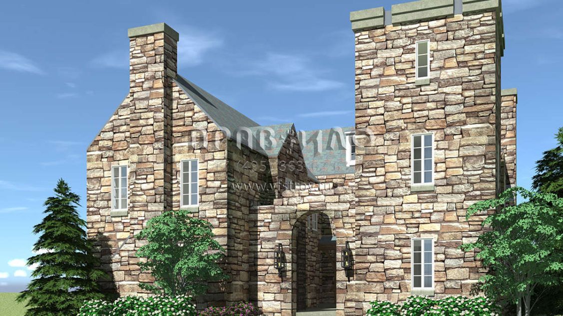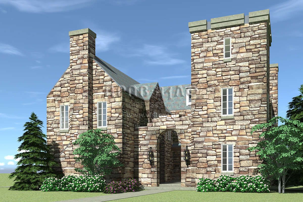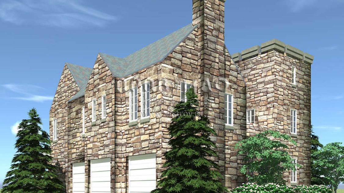 Проект особняка в замковом стиле с внутренним садом и гаражомстиле S5-386 (028-00162)
