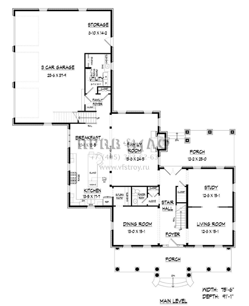 Проект двухэтажного дома с гаражом на три и более машин в стиле Особняк S5-386 (6082-00143)