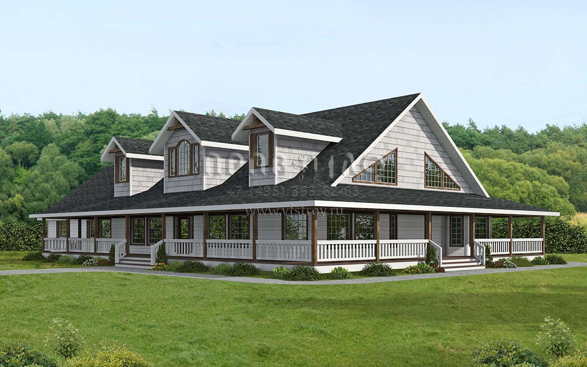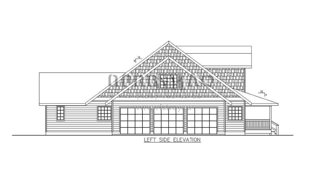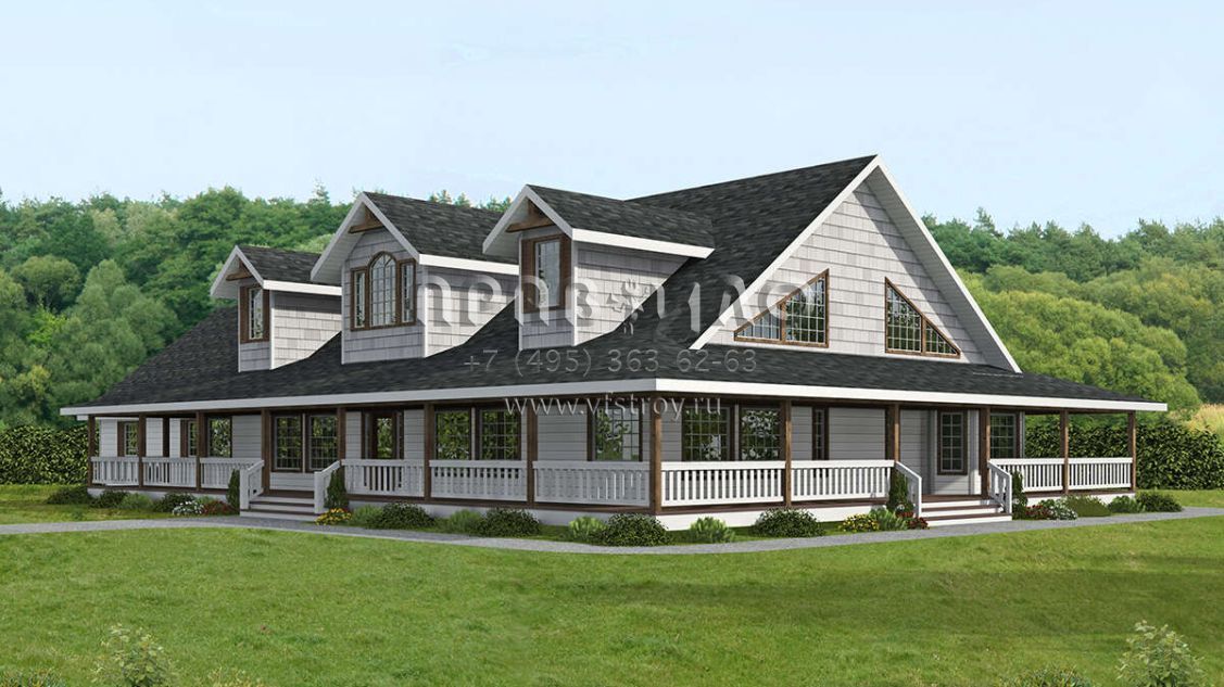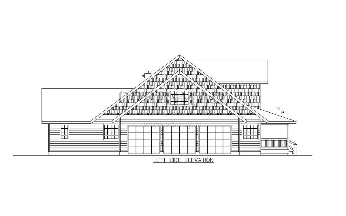 Проект двухэтажного дома с гаражом на три и более машин в стиле Ранчо S5-387 (039-00720)