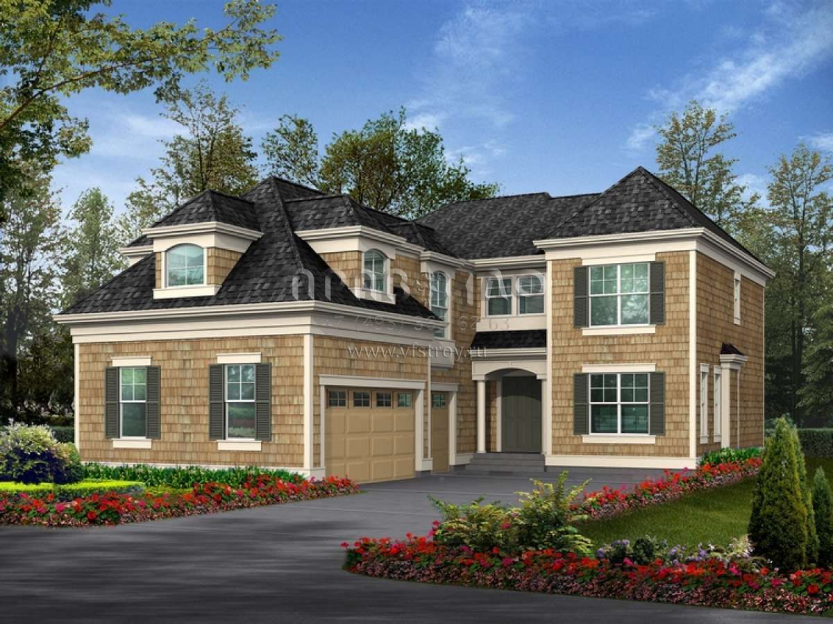 Проект двухэтажного дома с гаражом на три и более машин в английском стиле S5-387 (341-00245)
