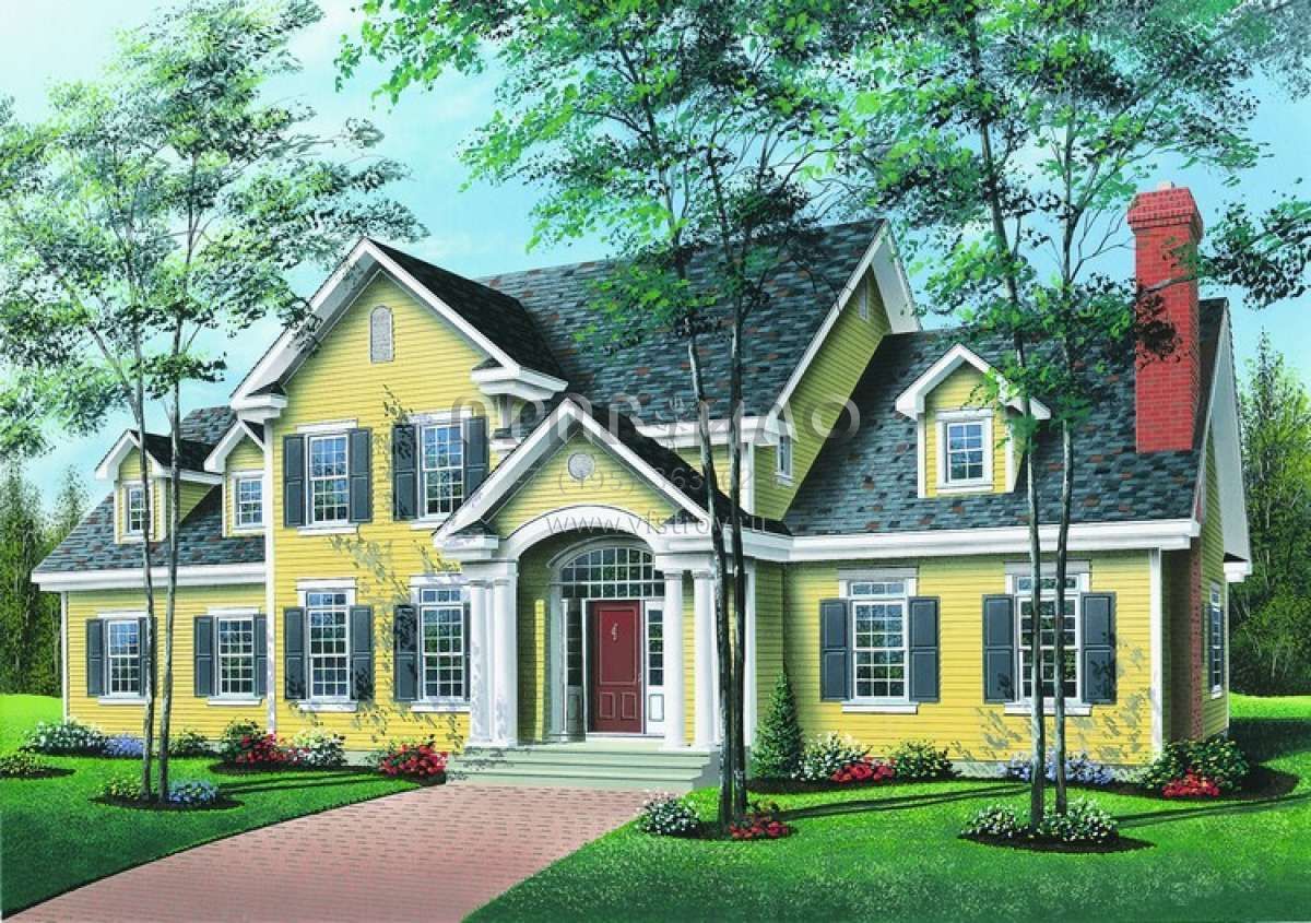 Проект двухэтажного дома с гаражом на две машины в стиле Ранчо S5-389 (034-00415)