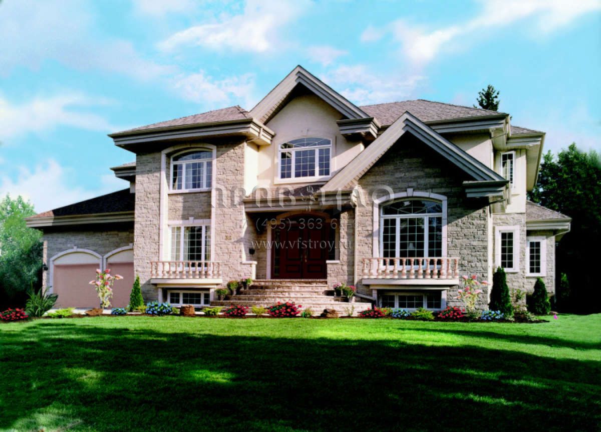 Проект двухэтажного дома с гаражом на две машины в английском стиле S5-390 (034-00050)