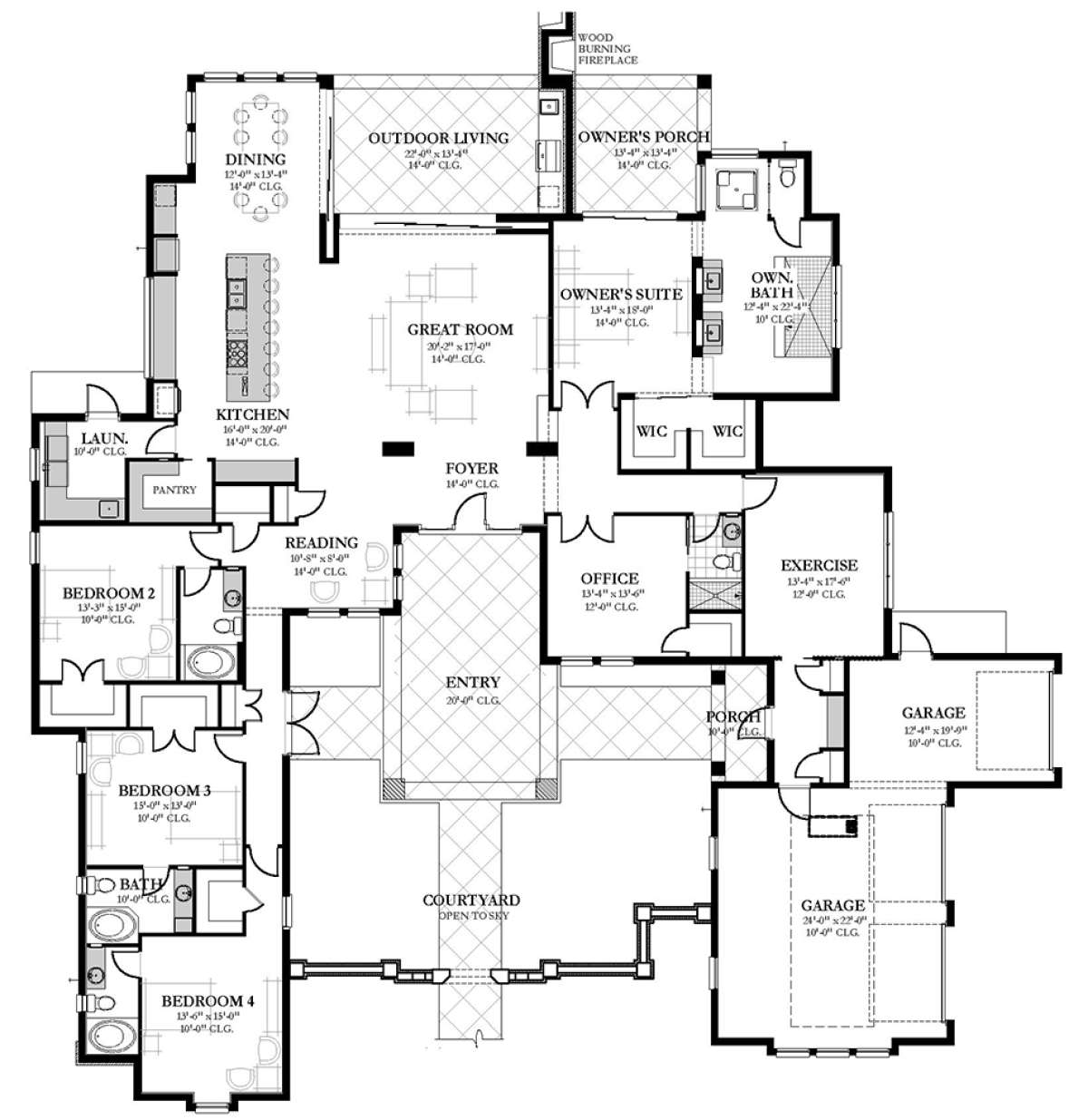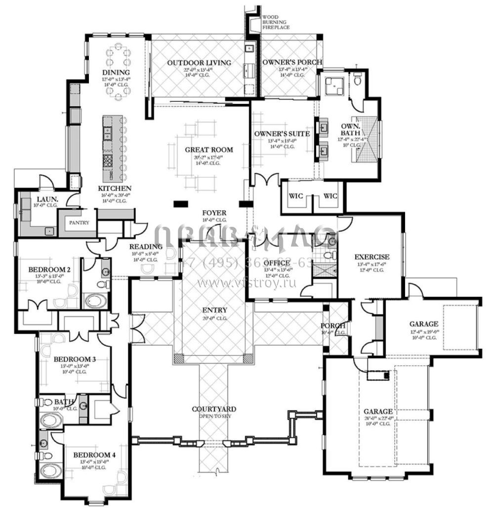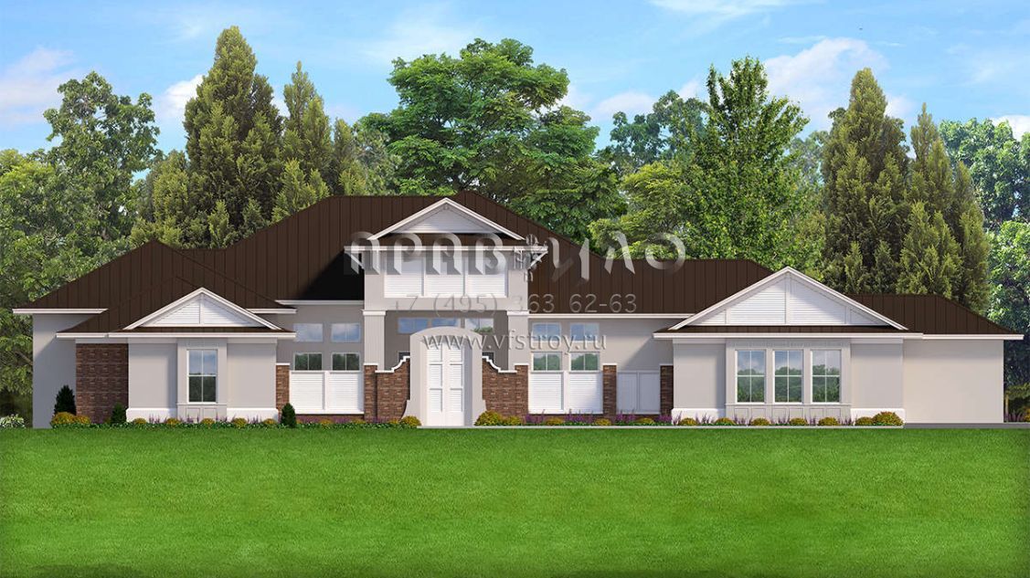 Проект одноэтажного дома с гаражом на три и более машин в стиле Ранчо S5-391 (3978-00059)