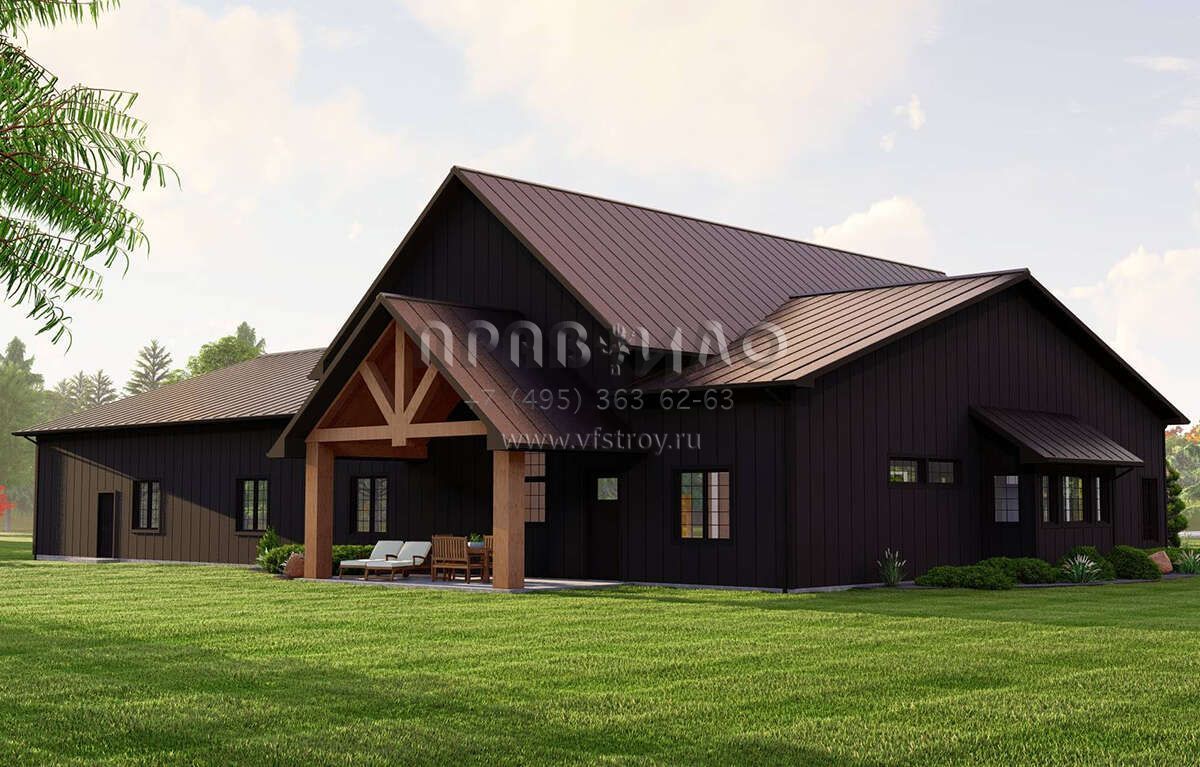 Большая площадь участка позволяет выбрать одноэтажный проект дома, особенно если в семье есть пожилые люди, инвалиды или маленькие дети.