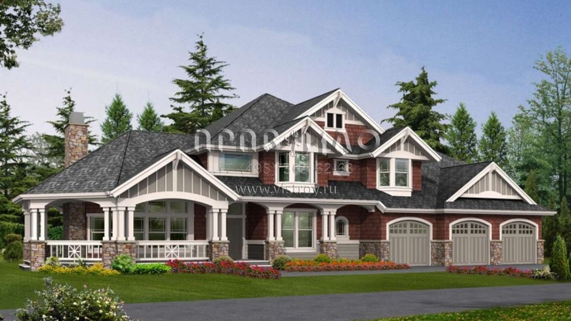 Проект двухэтажного дома с гаражом на три и более машин в современном стиле S5-392 (341-00170)