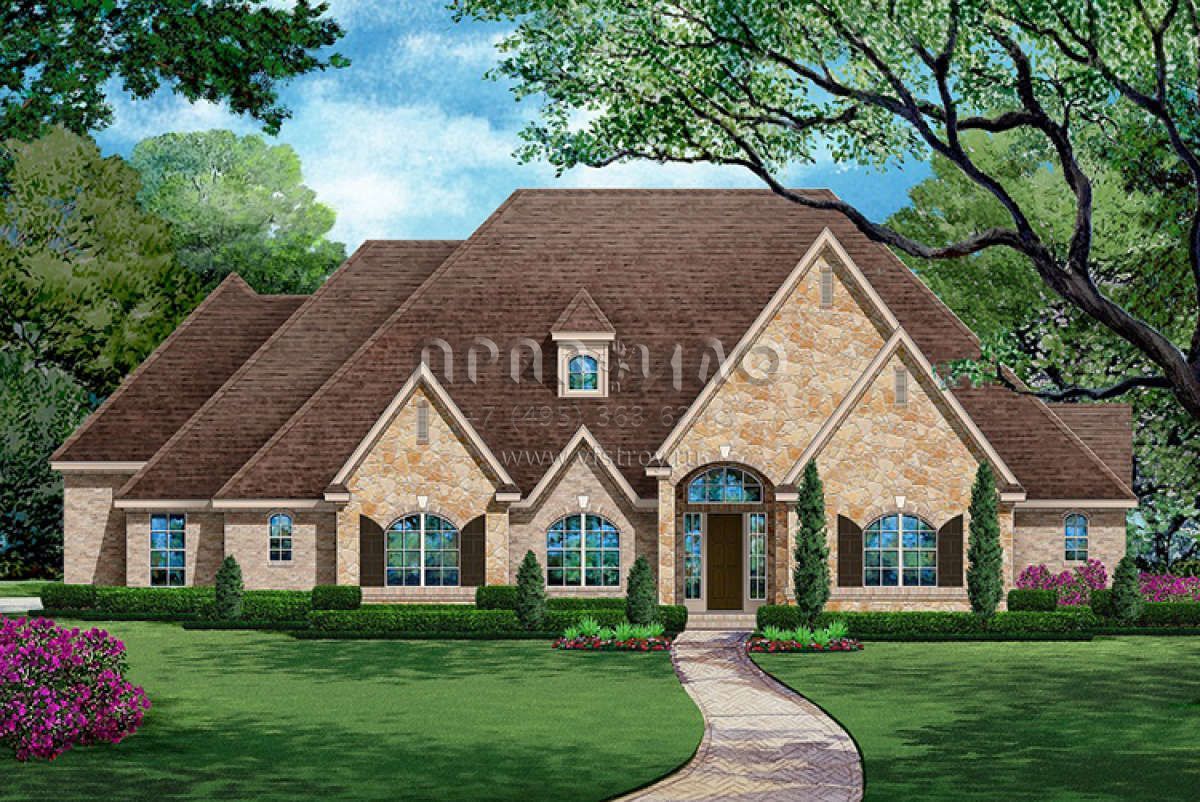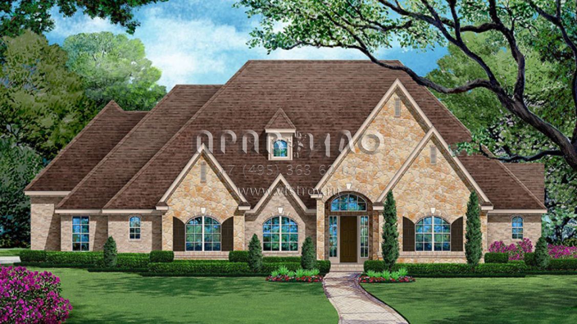 Проект одноэтажного дома с гаражом на три и более машин в английском стиле S5-392 (5445-00245)