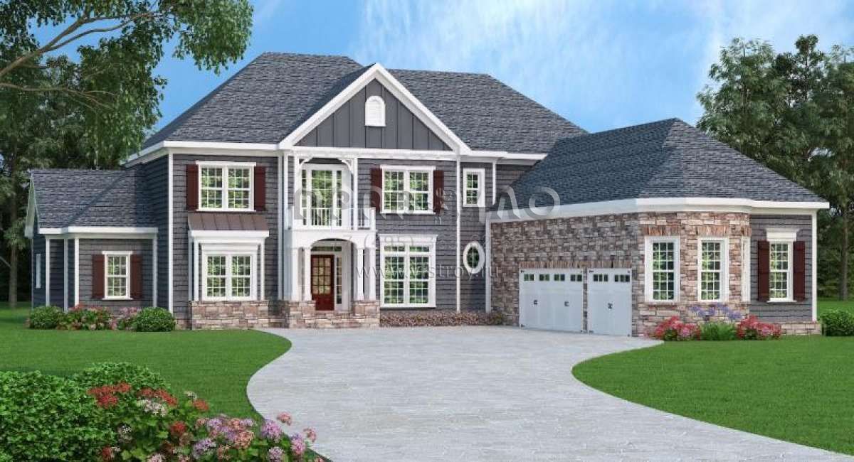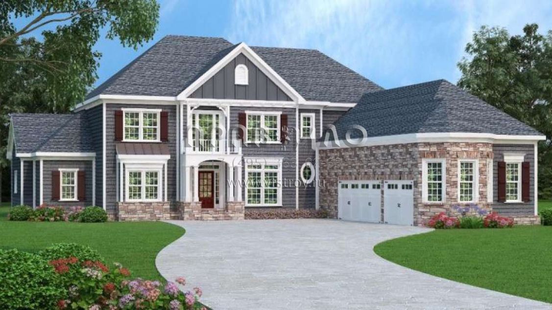 Проект двухэтажного дома с гаражом на три и более машин в английском стиле S5-393 (009-00252)