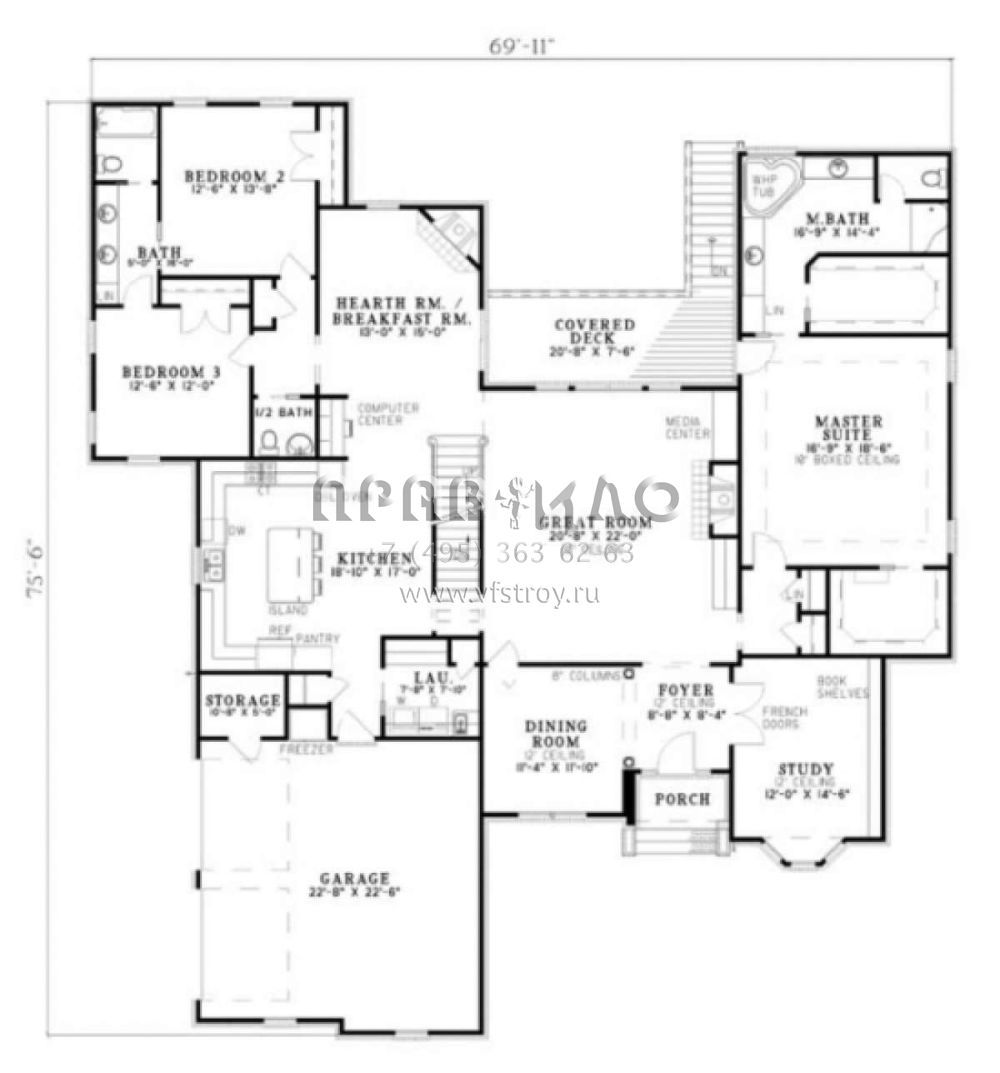Проект двухэтажного дома с гаражом на две машины в стиле Ранчо S5-393 (110-00127)