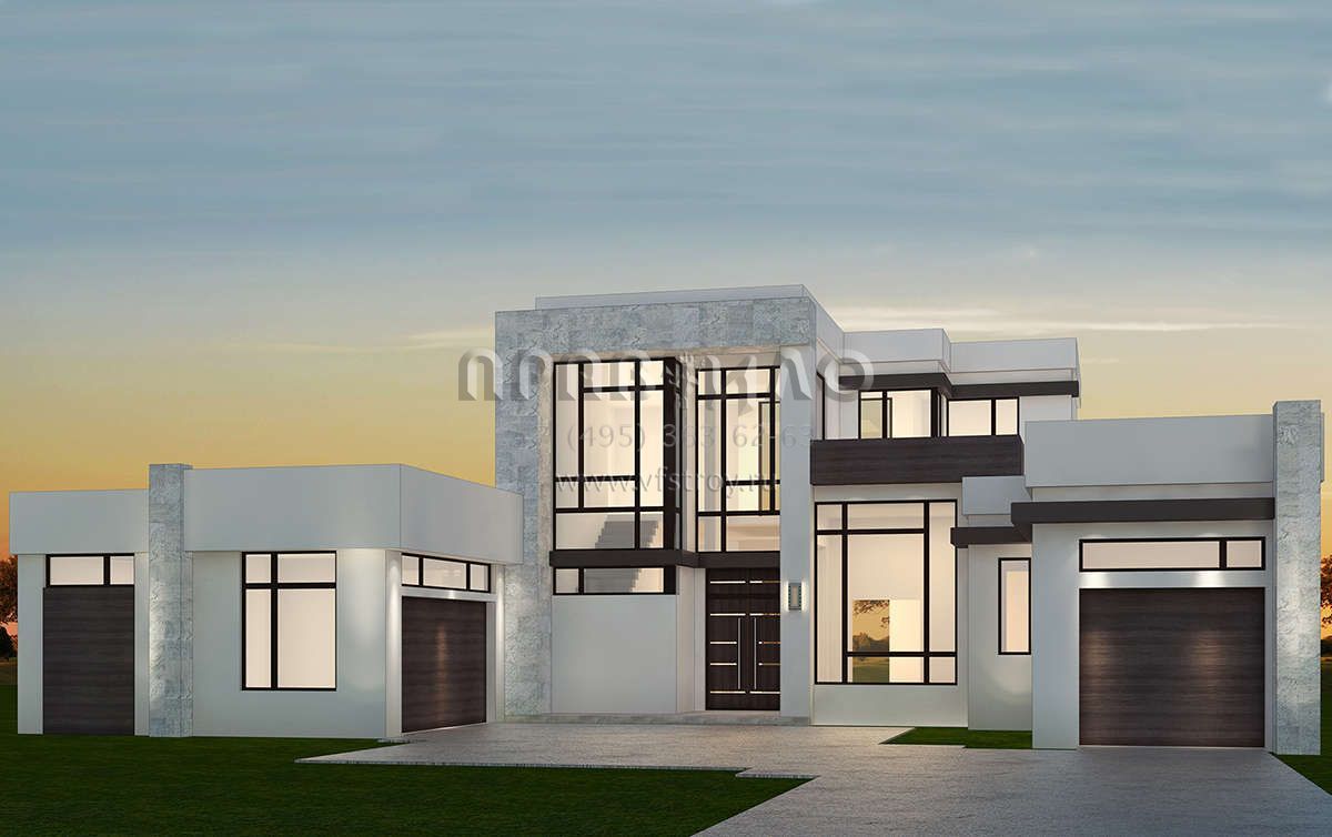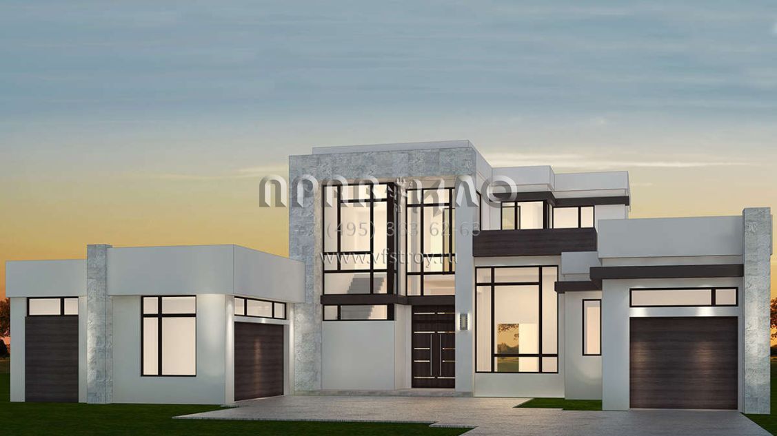 Проект дома с двумя гаражами в стиле хай-тек S5-393 (207-00075)