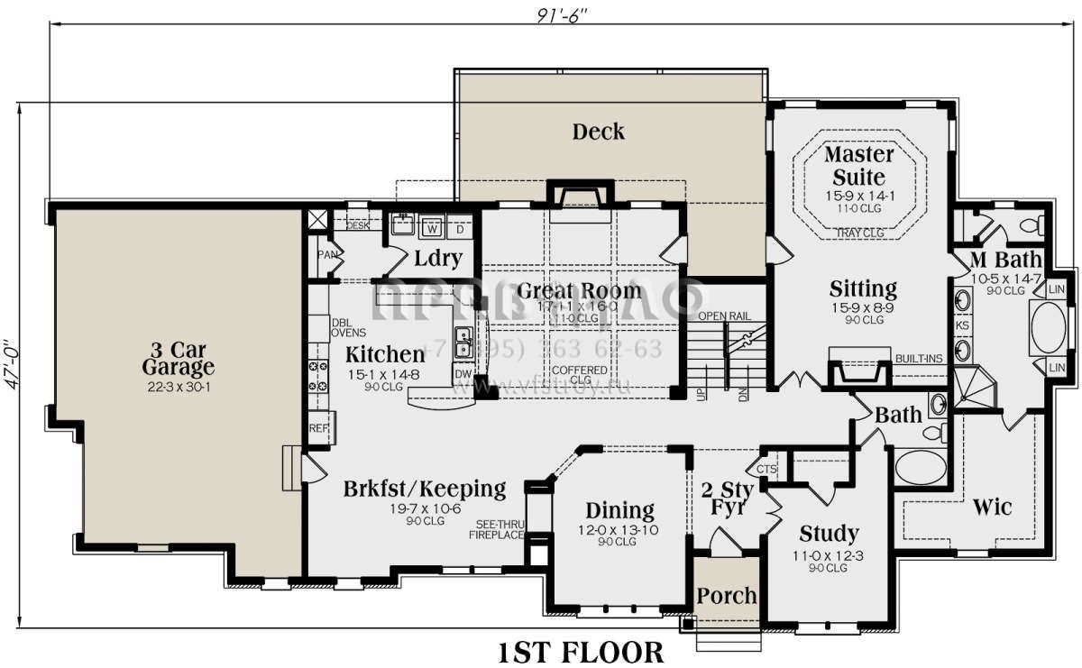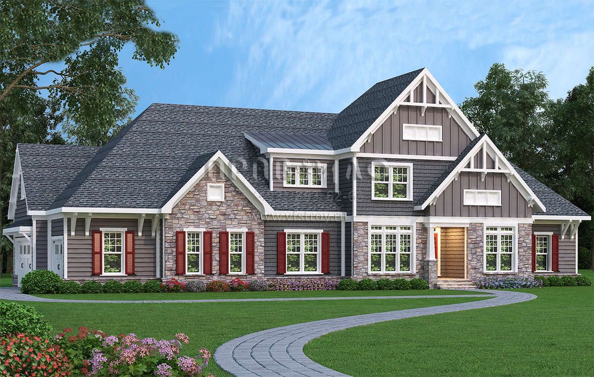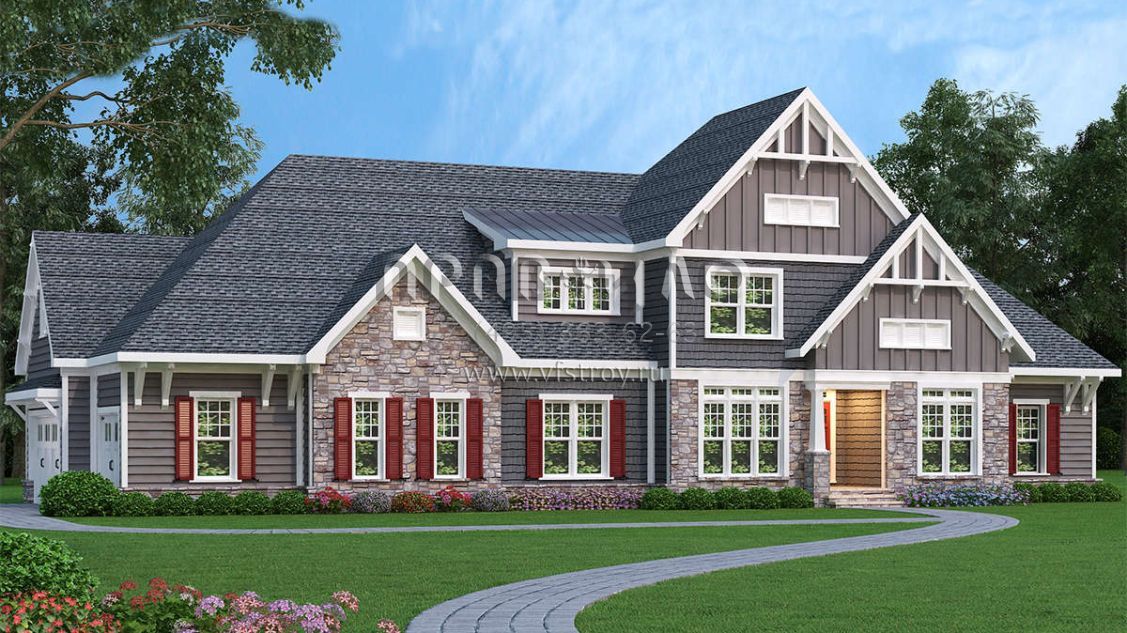 Проект двухэтажного дома с гаражом на три и более машин в американском стиле S5-394 (009-00217)