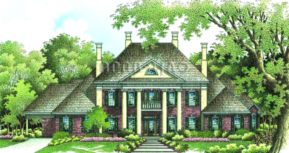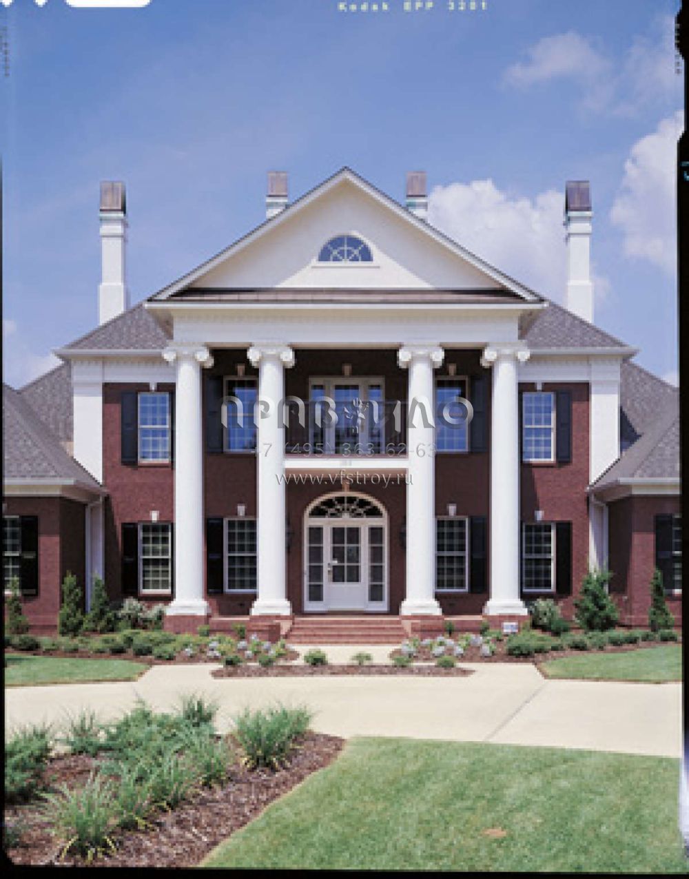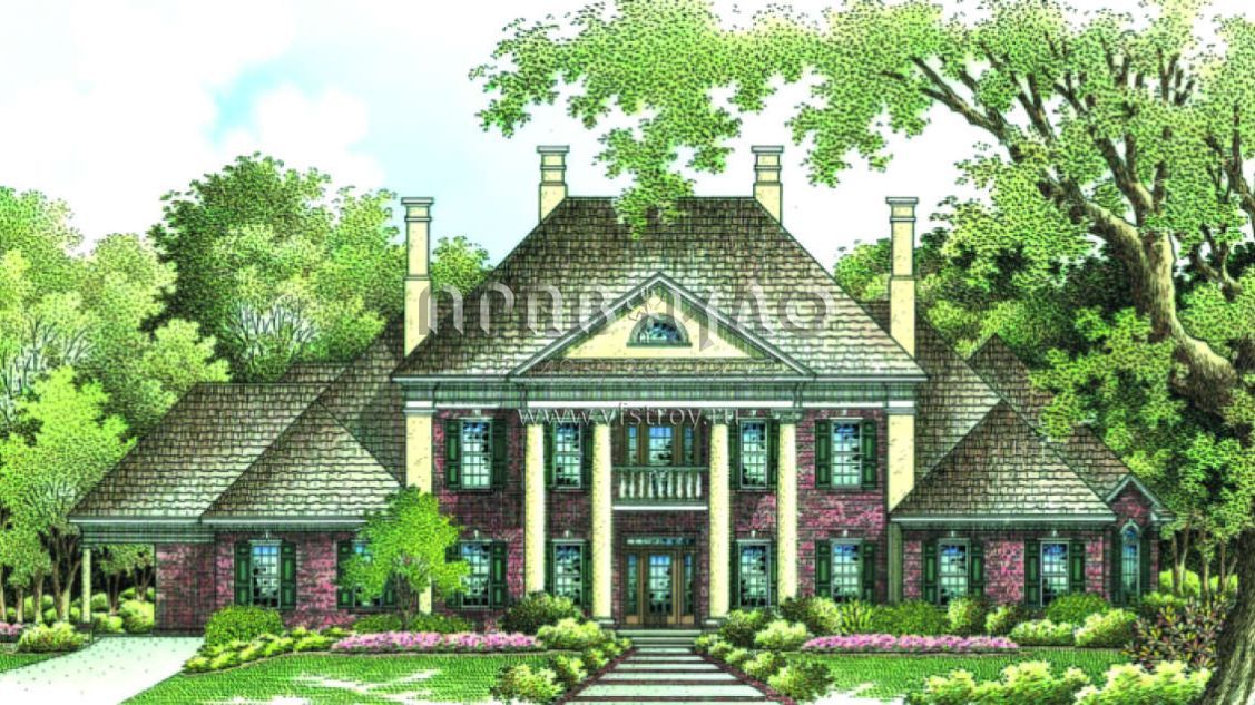 Проект двухэтажного особняка с колоннами с гаражом на две машины S5-394 (048-00206)