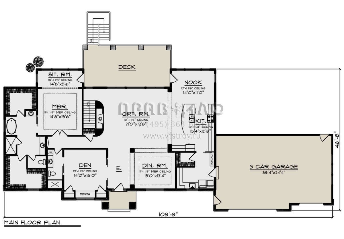 Проект одноэтажного дома с гаражом на три и более машин в стиле Ранчо S5-394 (1020-00344)