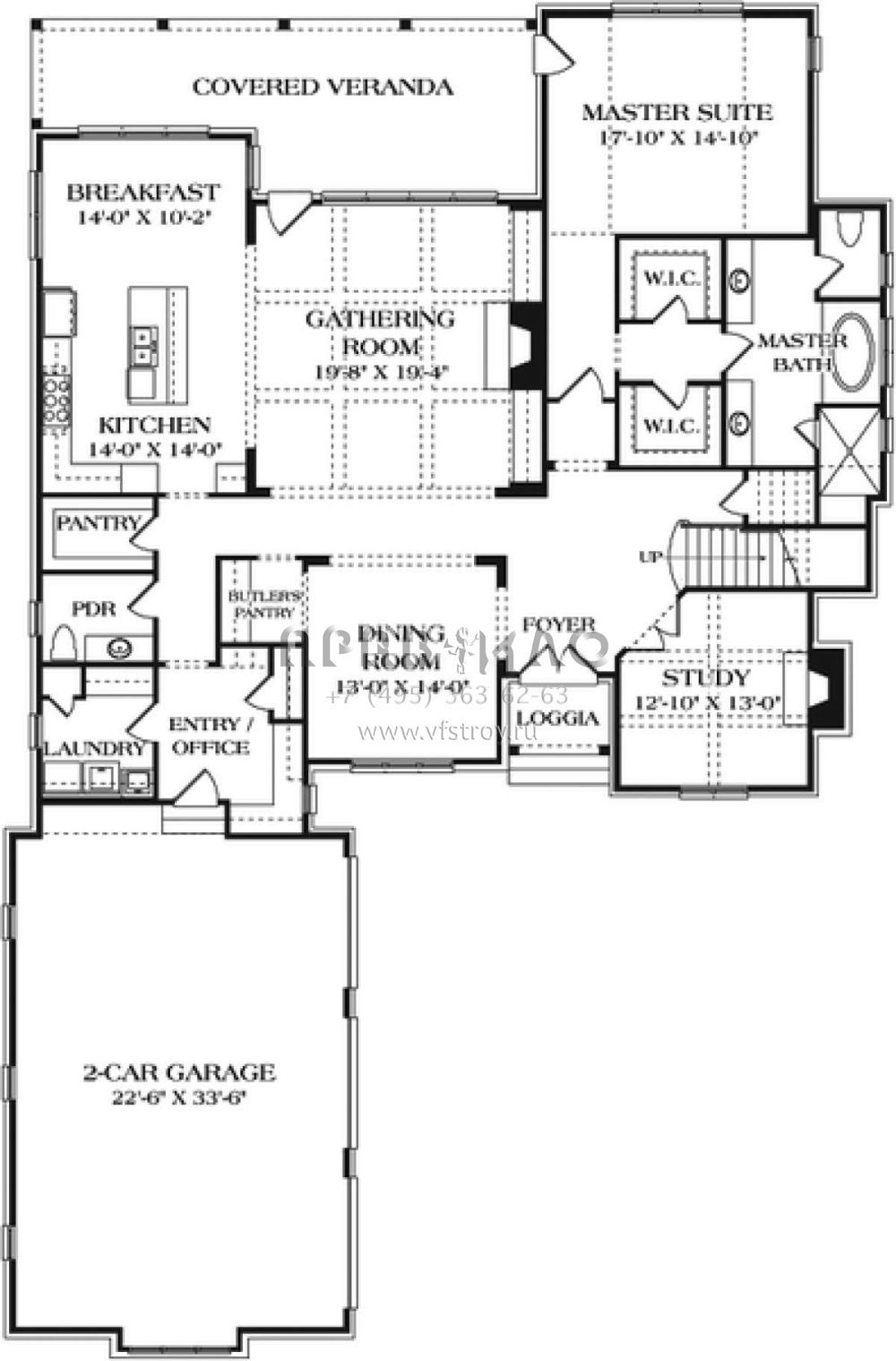 Проект двухэтажного дома с гаражом на две машины в стиле Ранчо S5-395 (3323-00629)