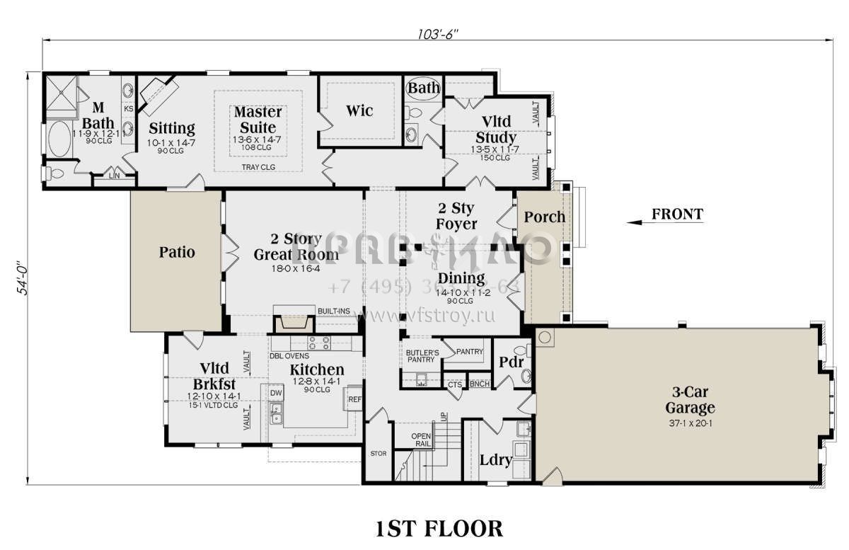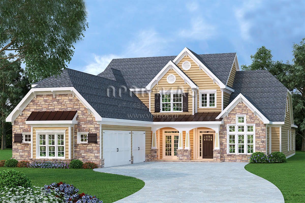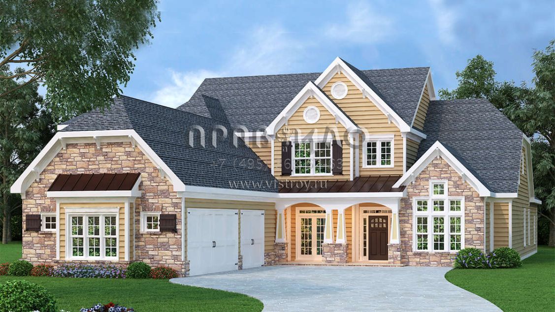 Проект двухэтажного дома с гаражом на три и более машин в американском стиле S5-396 (009-00222)