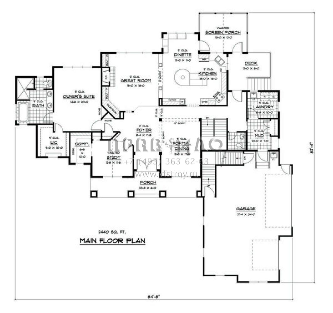 S5-396 (098-00034) Это иностранный проект, для которого требуется адаптация под нормы, действующие в Российской Федерации. Вы видите проект дома в американском стиле. В этом доме сочетаются черты сельской постройки и аскетичность лофта. Внутри жильцы смогут проводить время с максимальным комфортом. Обратим внимание, что сейчас на планировках все размеры представлены в футах. Для перевода в метры вам необходимо значение в футах умножить на 0,3048.