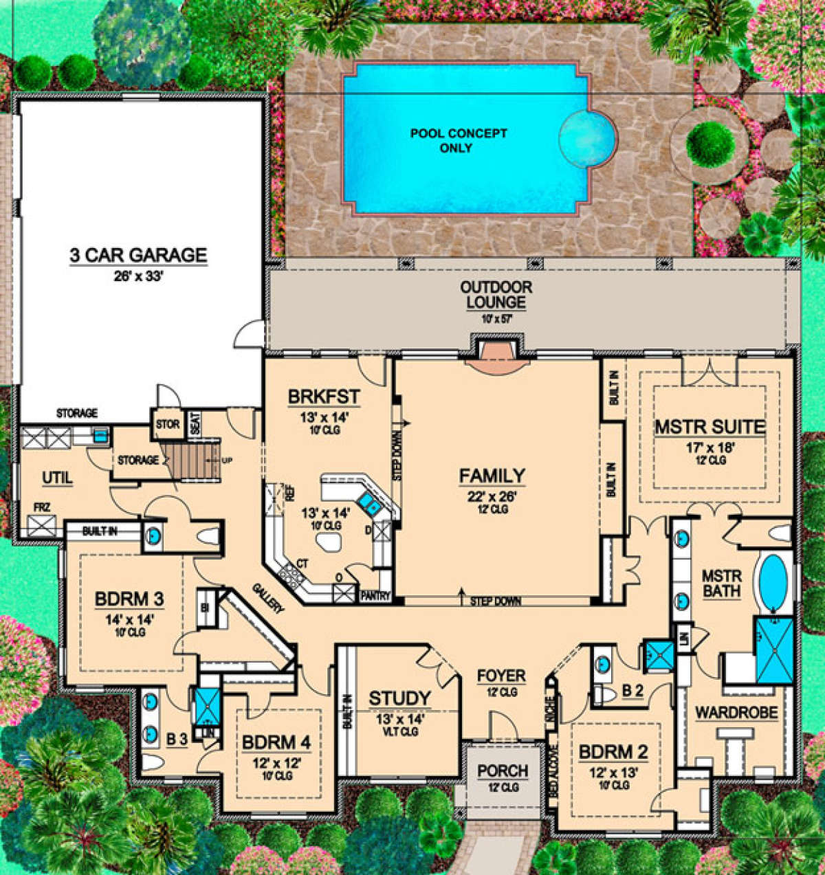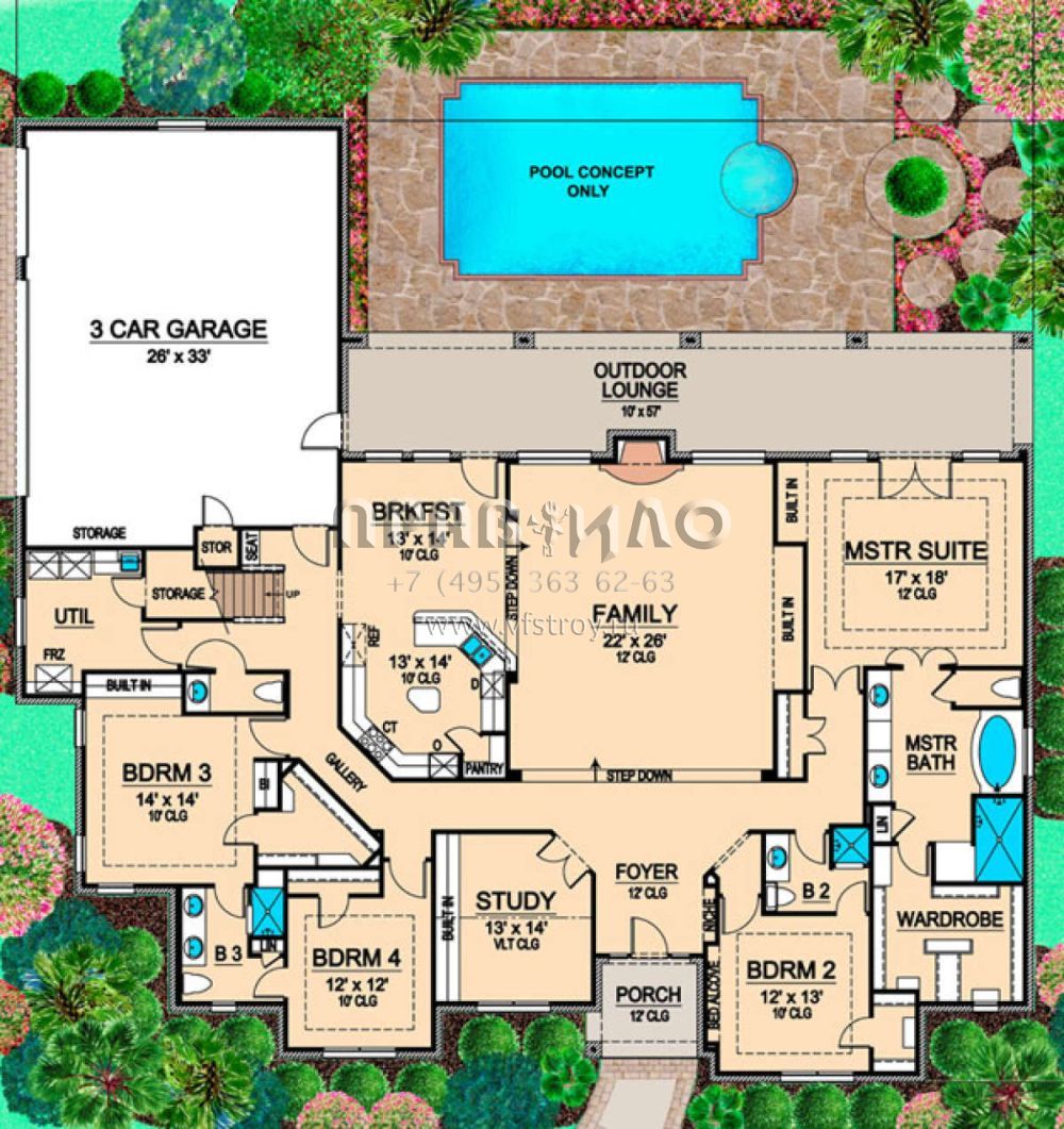 Проект одноэтажного дома с гаражом на три и более машин в английском стиле S5-396 (5445-00170)