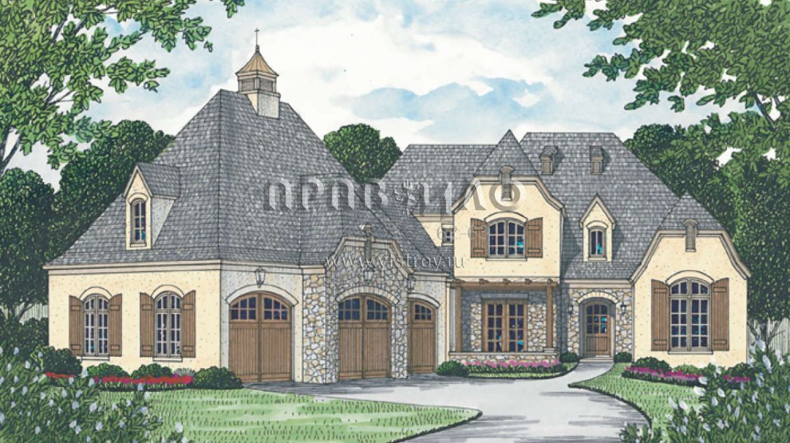Проект двухэтажного дома с гаражом на три и более машин в английском стиле S5-397 (3323-00631)