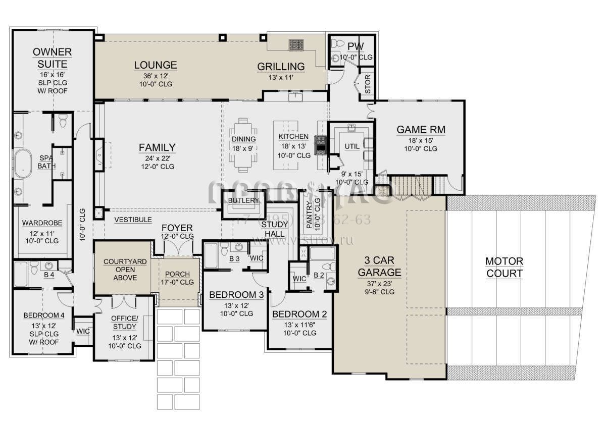 Поскольку этот проект разрабатывался иностранными архитекторами, для строительства дома требуется переработка проекта под действующие в России нормы. Данные визуализации проекта представлены для ознакомления с концепцией проекта. Проект разработан американским архитектурным бюро и представлен America's Best House Plans.