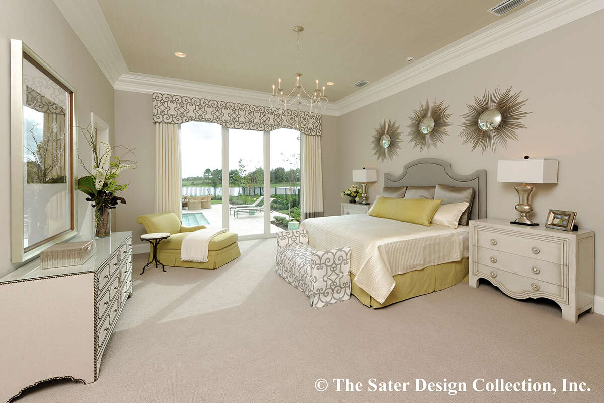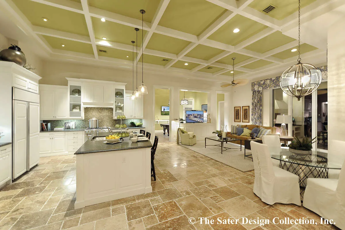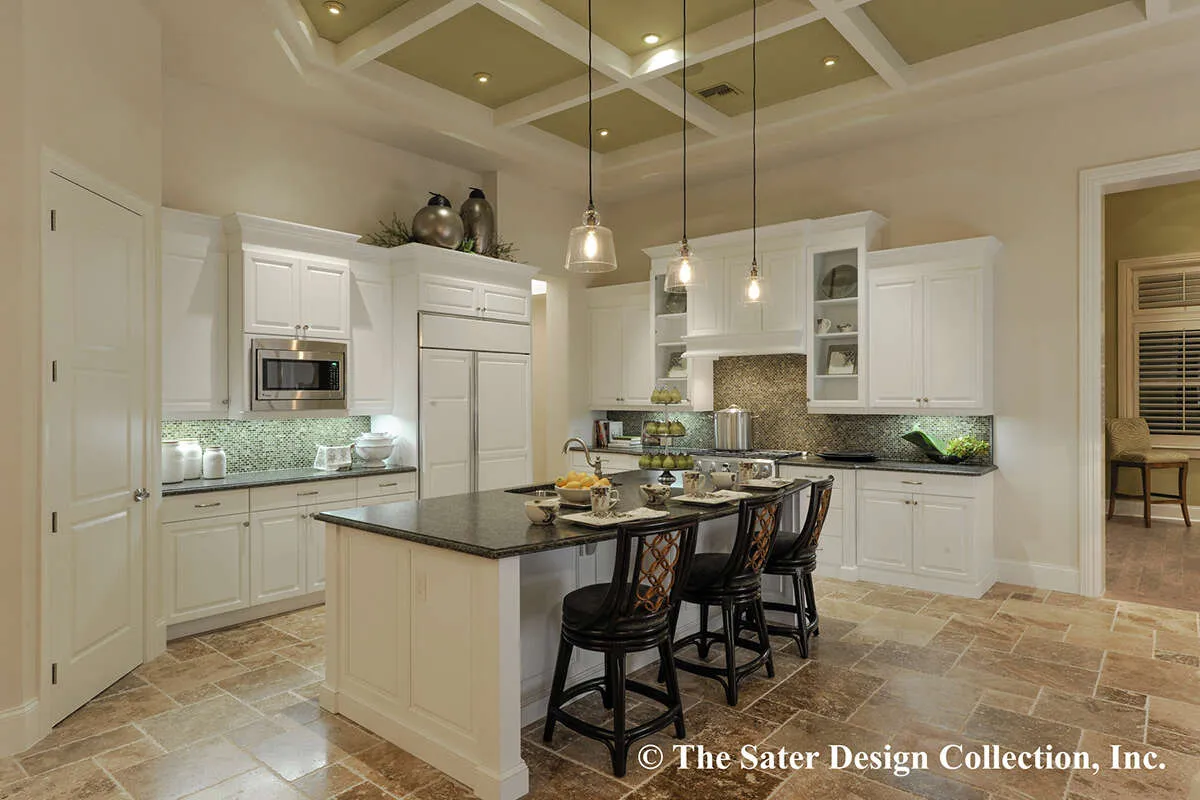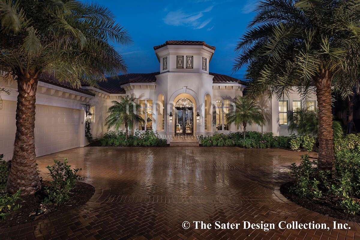 Это проект одноэтажного дома с гаражом на три и более машин жилой площадью 398 кв.м. Длина дома 35.4 м, ширина 24.4 м, высота 7.6 м. В доме четыре спальни и четыре санузла.