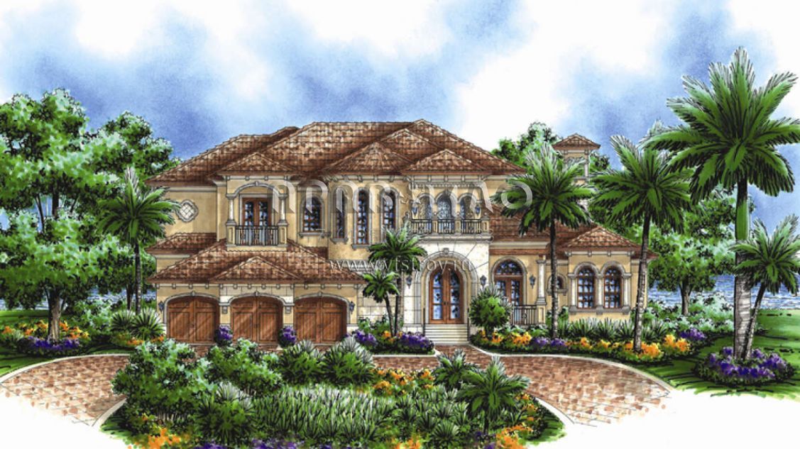Проект двухэтажного дома с гаражом на две машины в прибрежном стиле S5-400 (575-00009)