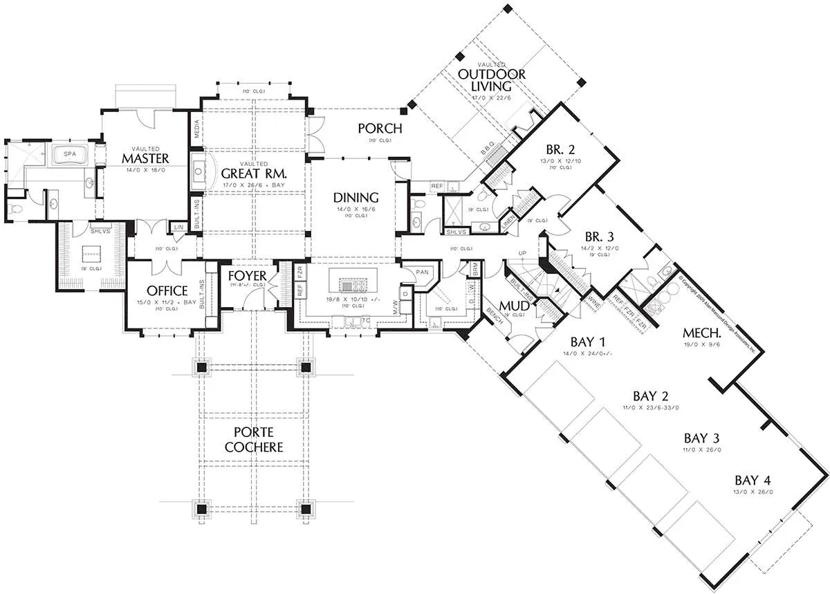 Проект двухэтажного дома с гаражом на три и более машин в американском стиле S5-403 (2559-00020)