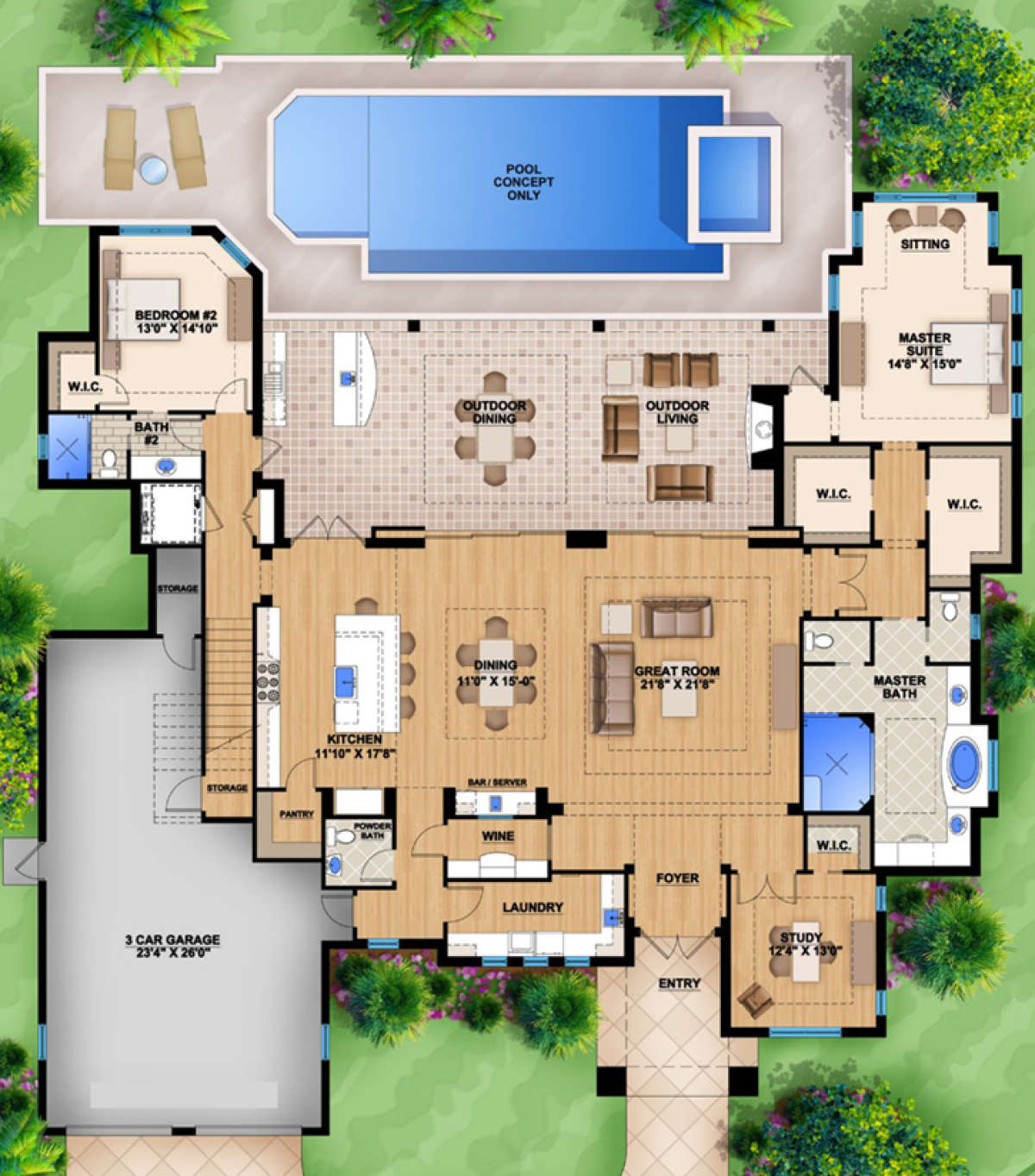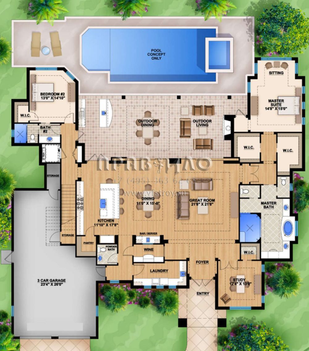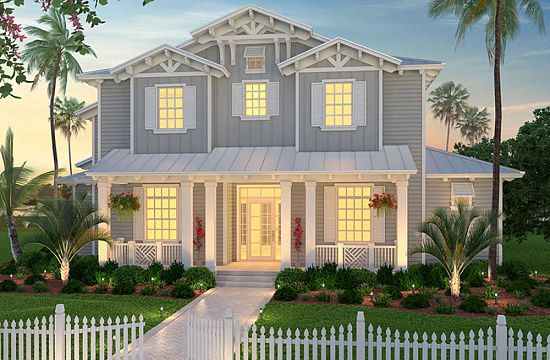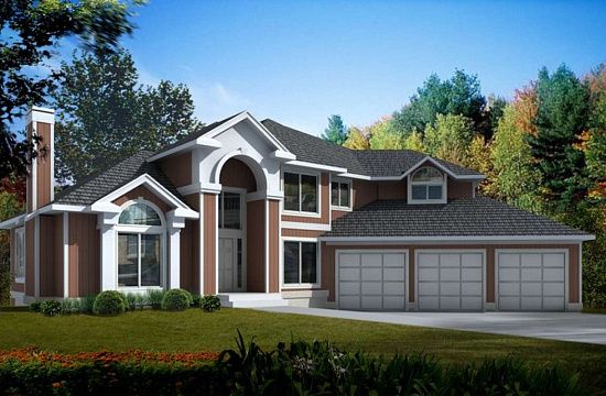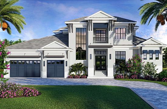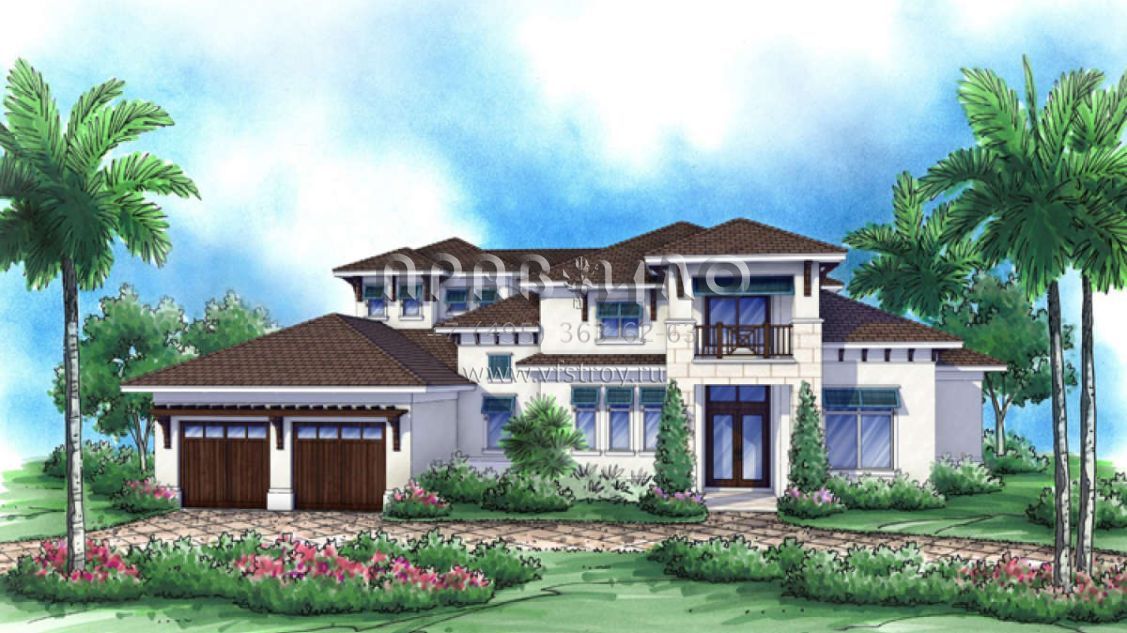 Проект двухэтажного дома с гаражом на три и более машин в прибрежном стиле S5-404 (207-00014)