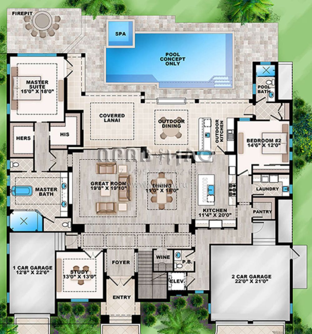 Поскольку этот проект разрабатывался иностранными архитекторами, для строительства дома требуется переработка проекта под действующие в России нормы. Данные визуализации проекта представлены для ознакомления с концепцией проекта. Проект разработан американским архитектурным бюро и представлен America's Best House Plans.