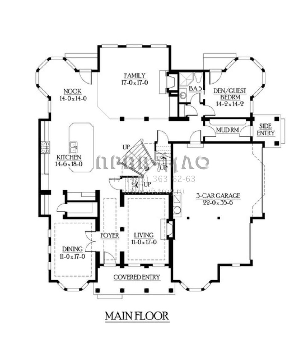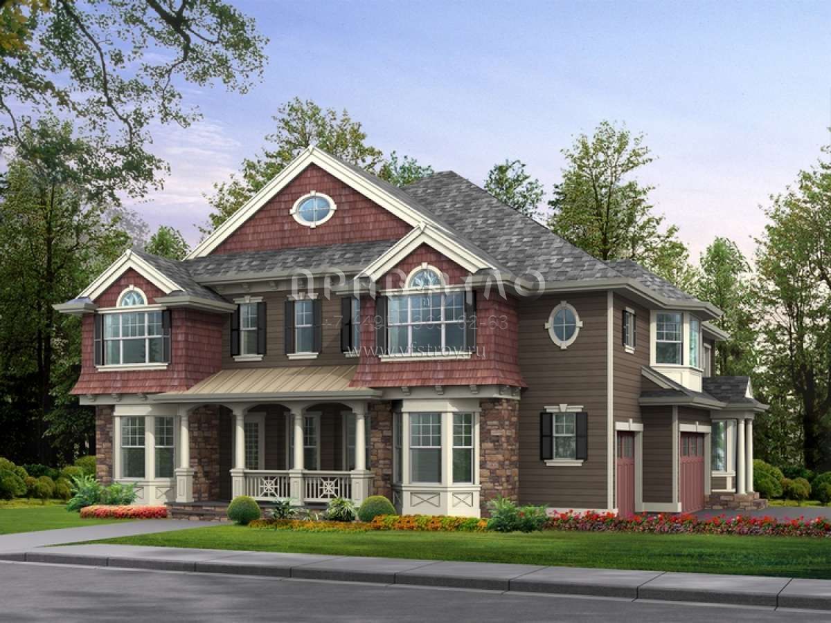Проект двухэтажного дома с гаражом на три и более машин в американском стиле S5-405 (341-00253)