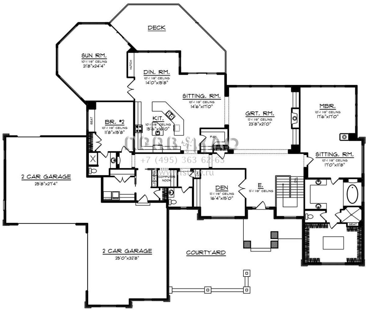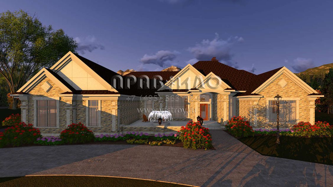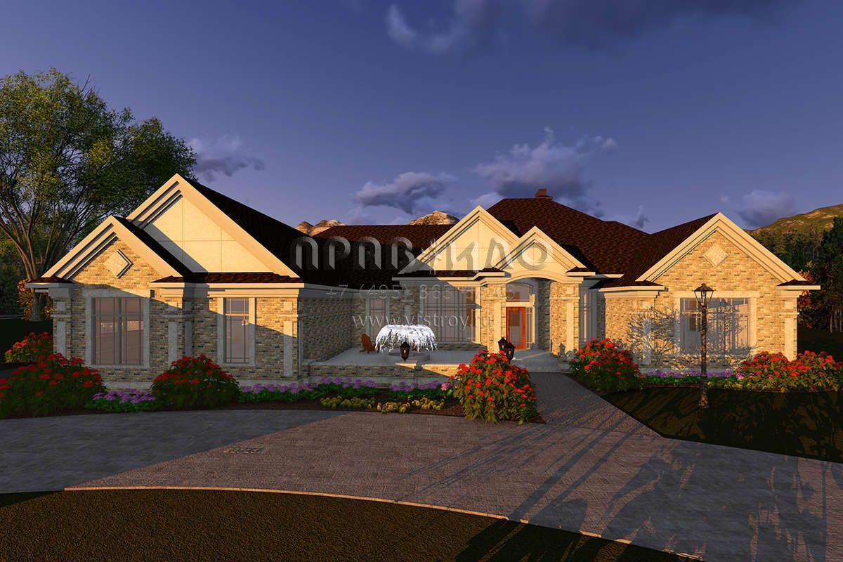 Проект одноэтажного дома с гаражом на три и более машин в стиле Ранчо S5-406 (1020-00082)