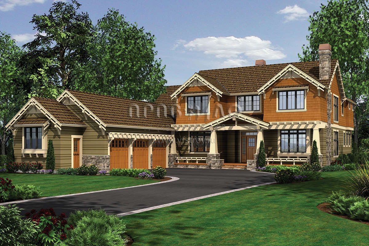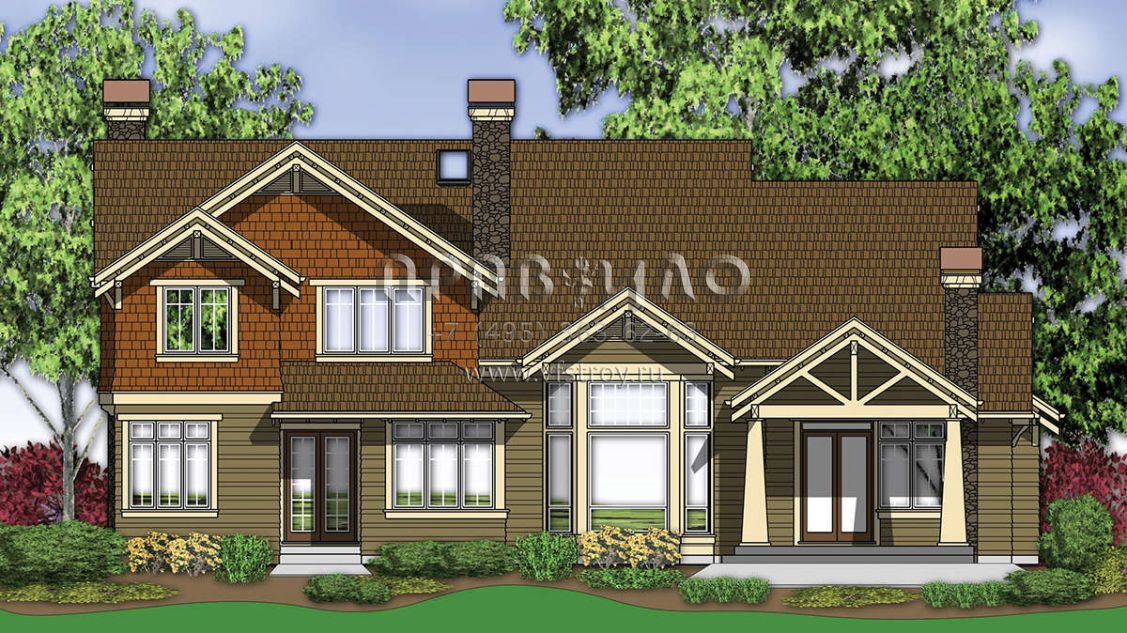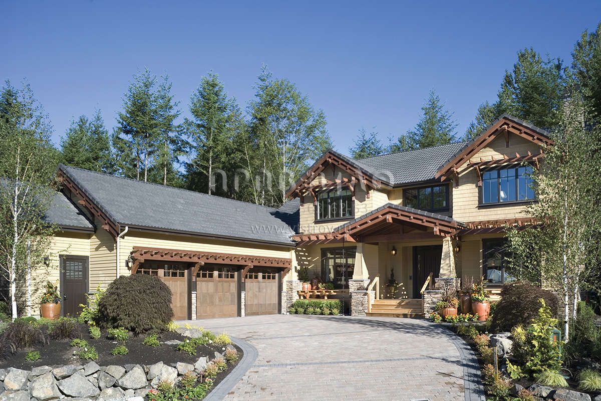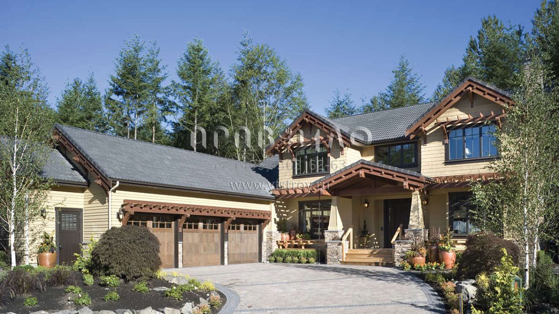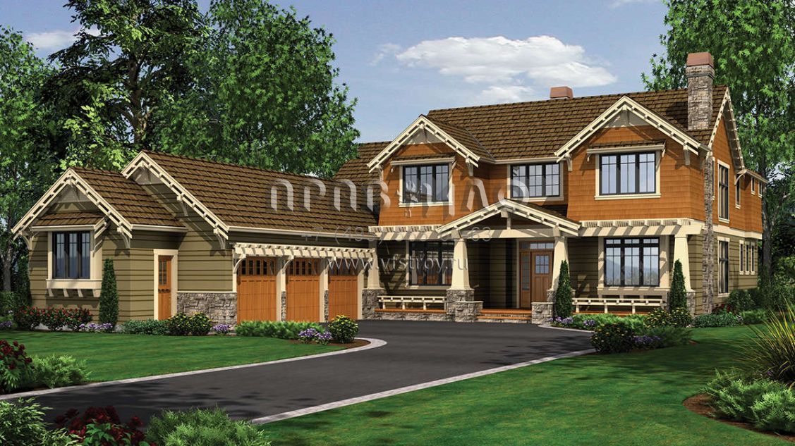 Проект двухэтажного дома с гаражом на три и более машин в стиле Ранчо S5-406 (2559-00614)