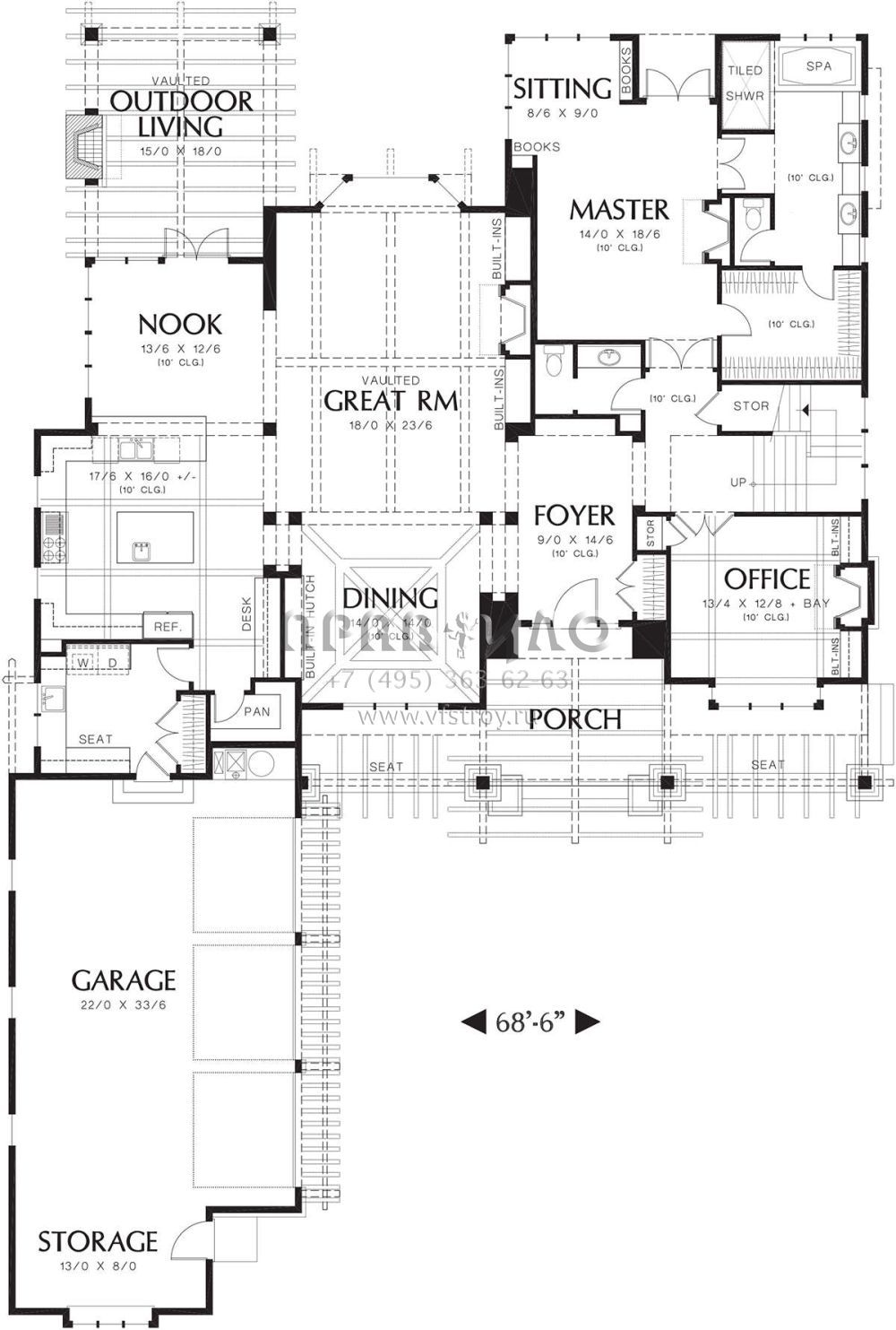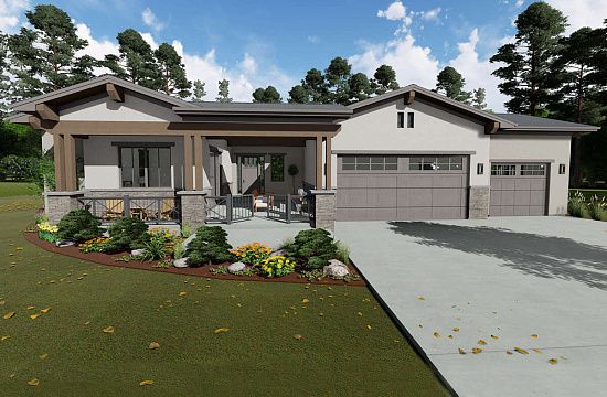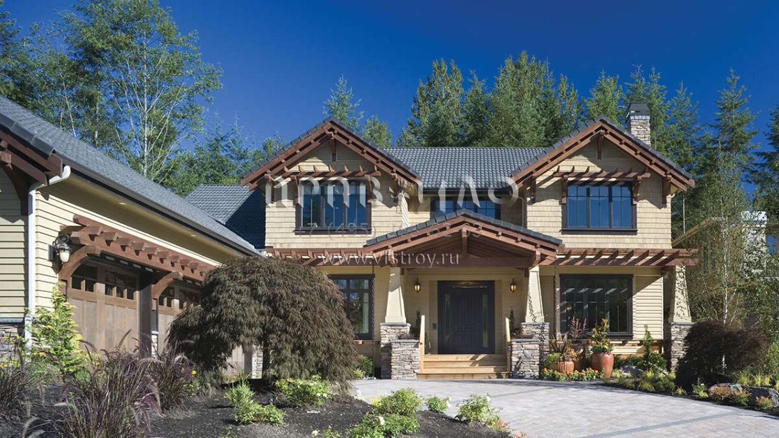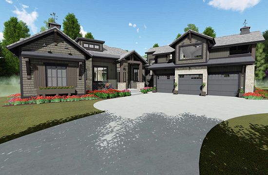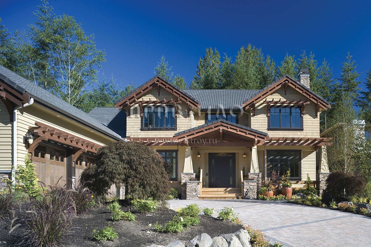 Проект двухэтажного дома с гаражом на три и более машин в стиле Ранчо S5-406 (2559-00614)