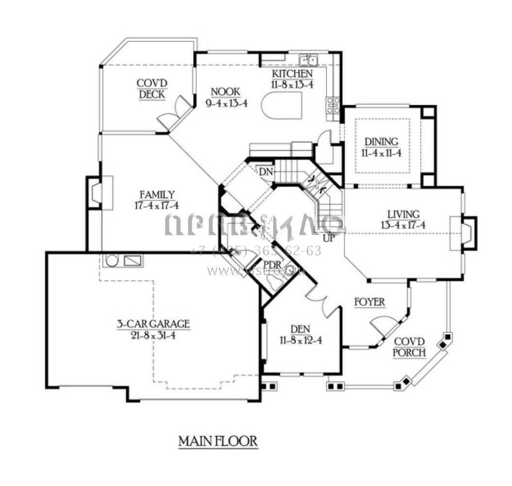 Проект двухэтажного дома с гаражом на три и более машин в американском стиле S5-406 (341-00222)