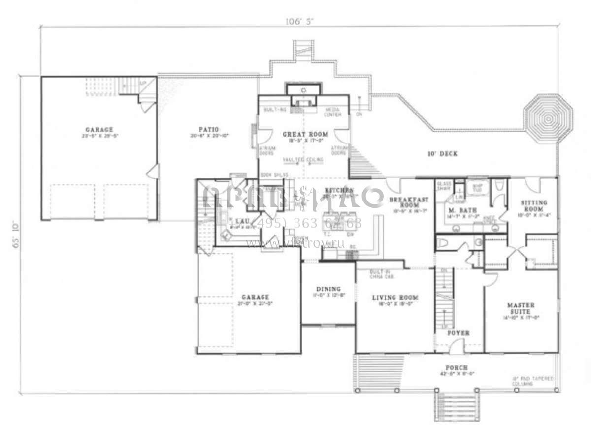 Проект двухэтажного дома с гаражом на три и более машин в стиле Ранчо S5-407 (110-00145)