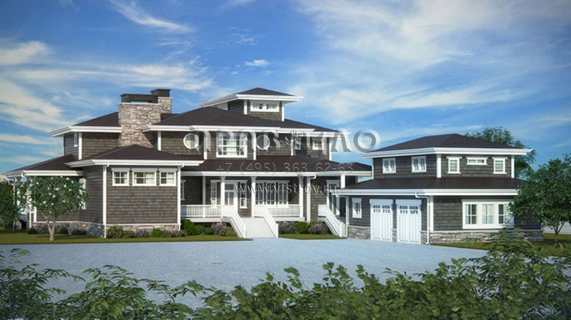 Проект двухэтажного дома с гаражом на две машины в стиле Ранчо S5-407 (5631-00074)