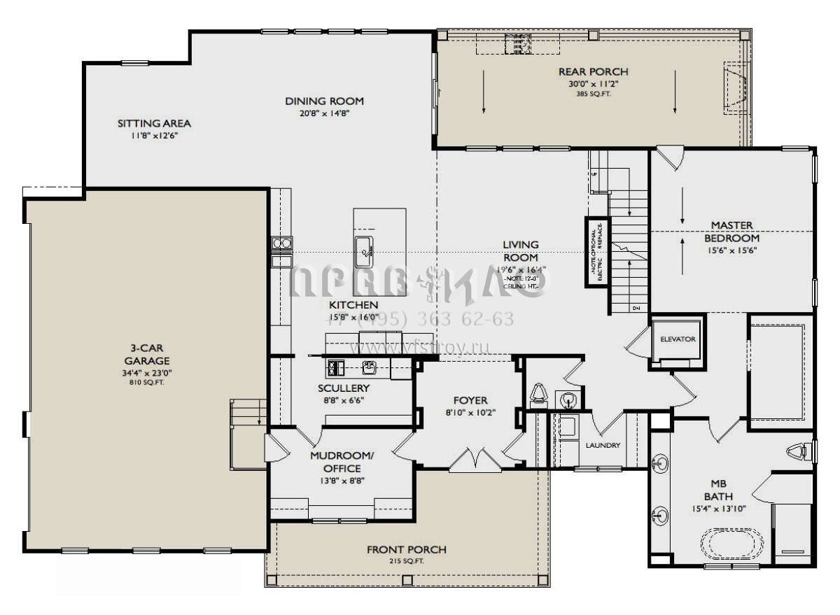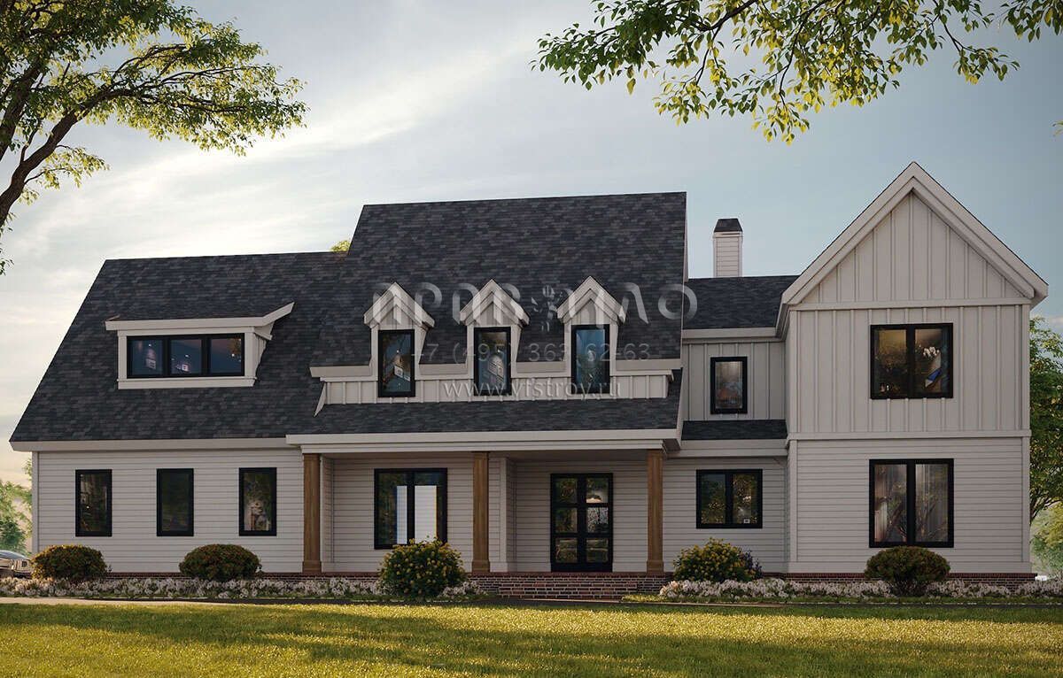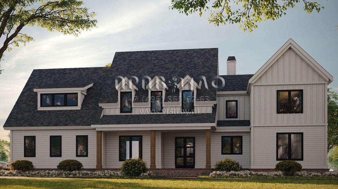 Проект двухэтажного дома с гаражом на три и более машин в стиле Ранчо S5-407 (957-00111)