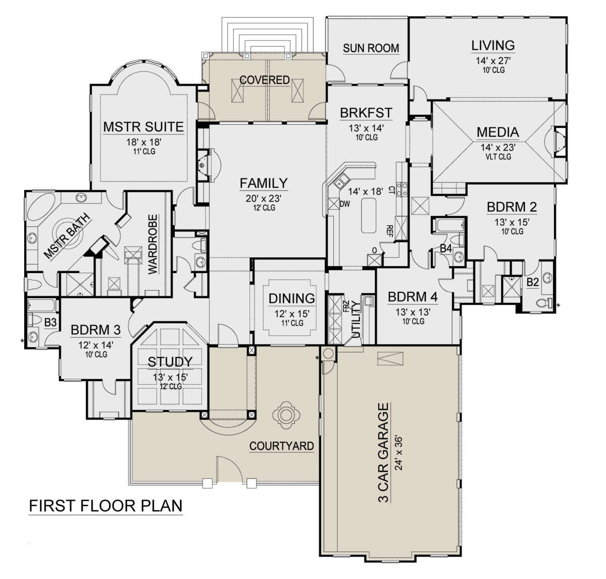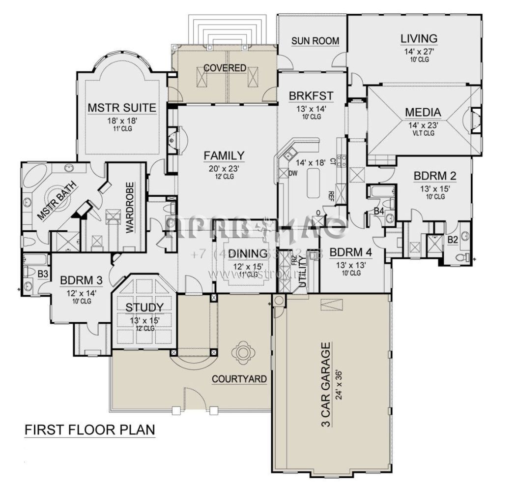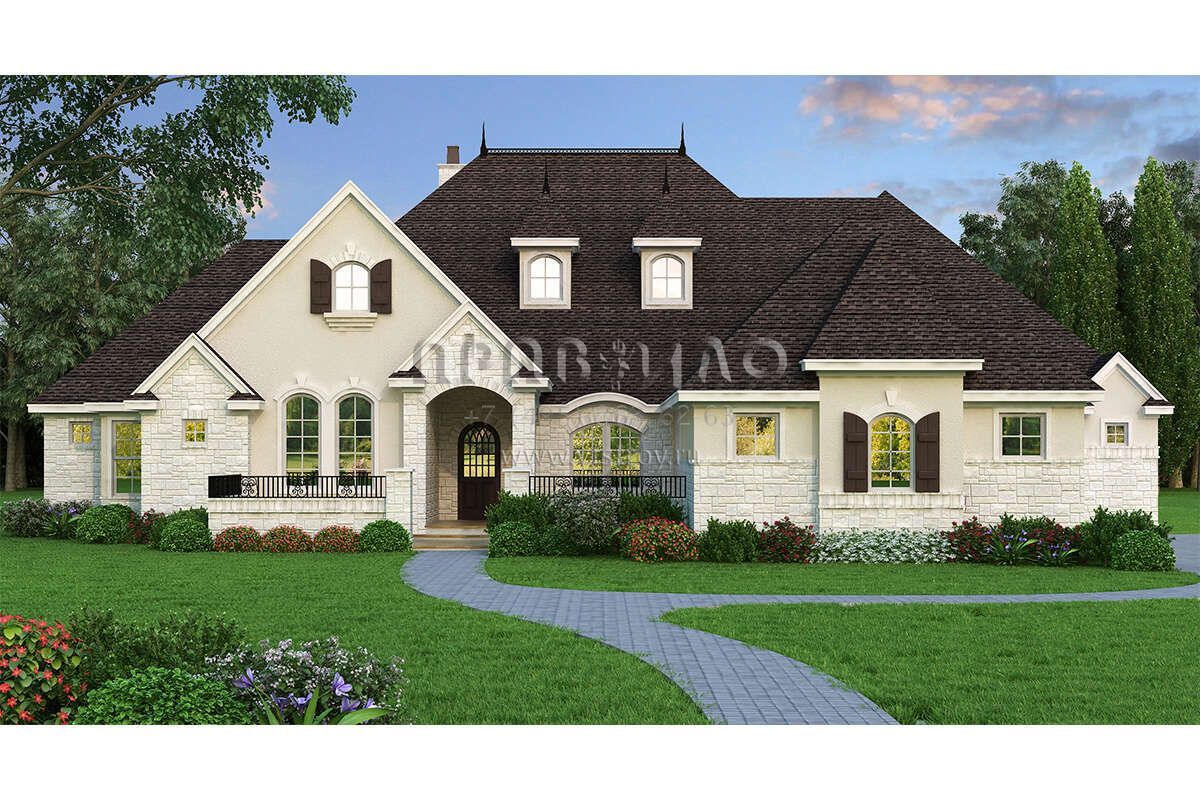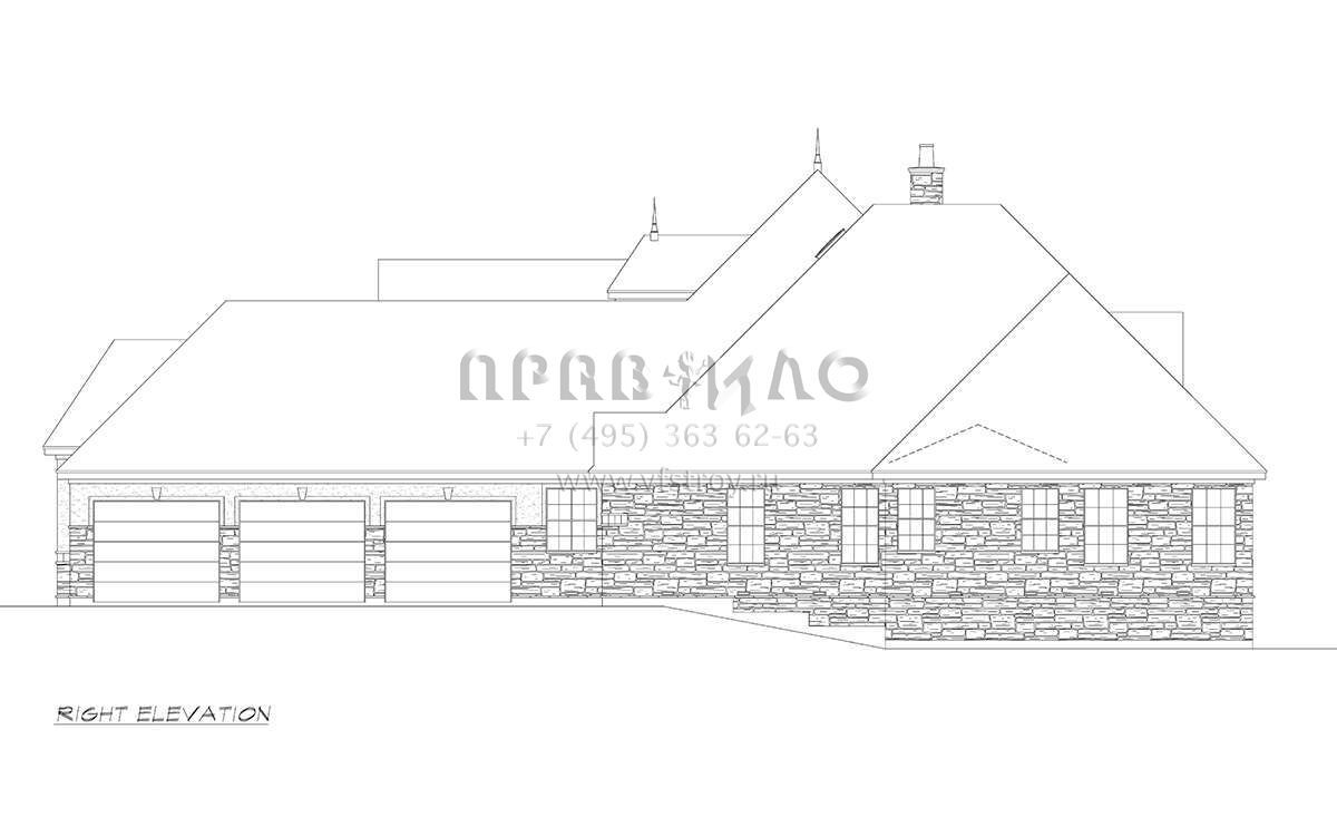 Проект одноэтажного дома с гаражом на три и более машин в стиле Ранчо S5-408 (5445-00511)